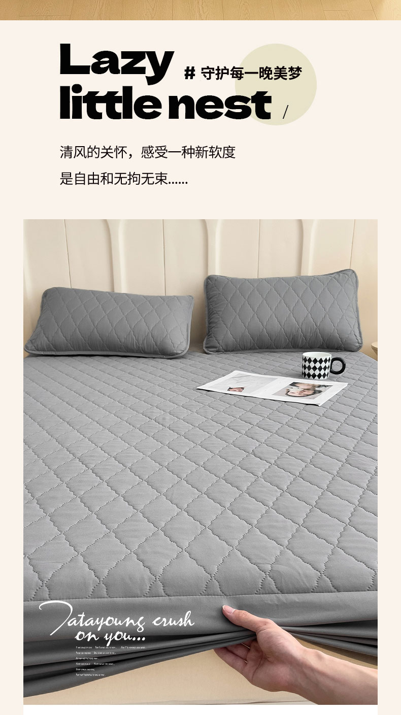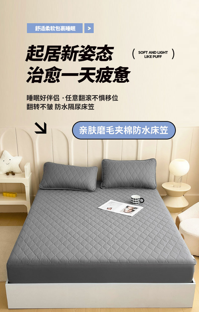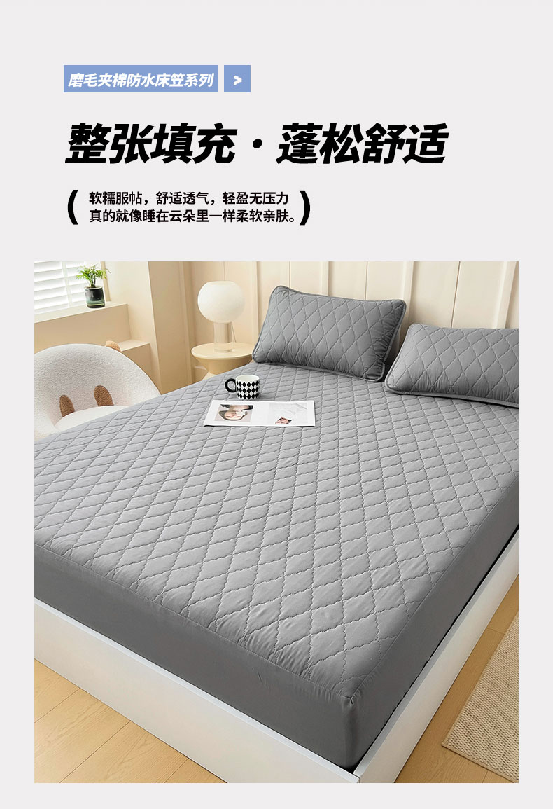 • 91家纺网 家纺一手货源 找家纺 蝶蔻家纺 2025新款亚马逊外贸跨境亲肤磨毛夹棉涤纶TPU防水床笠虾皮希音Temu爆款 浅灰,浅灰