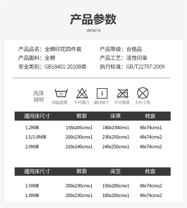 【床笠款】1.8四件套-被套200x230 | ¥115.00 |