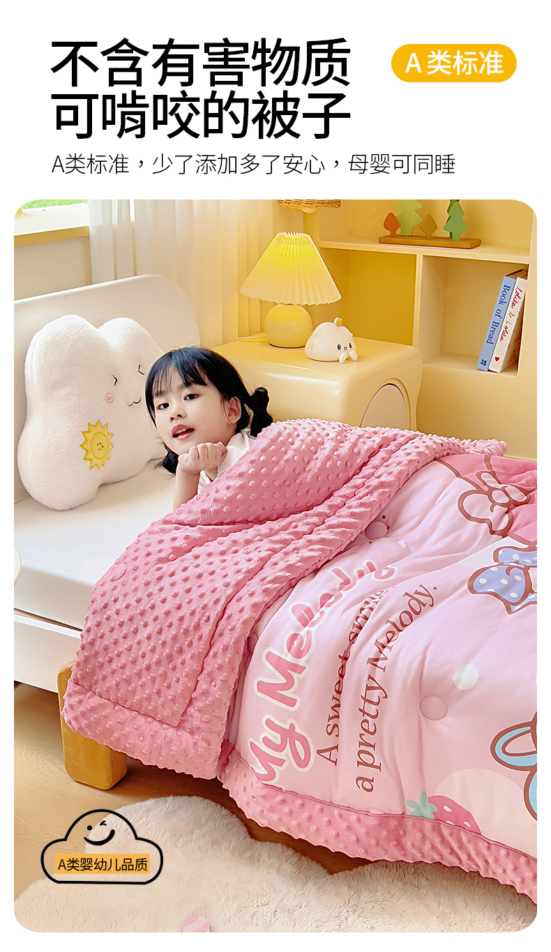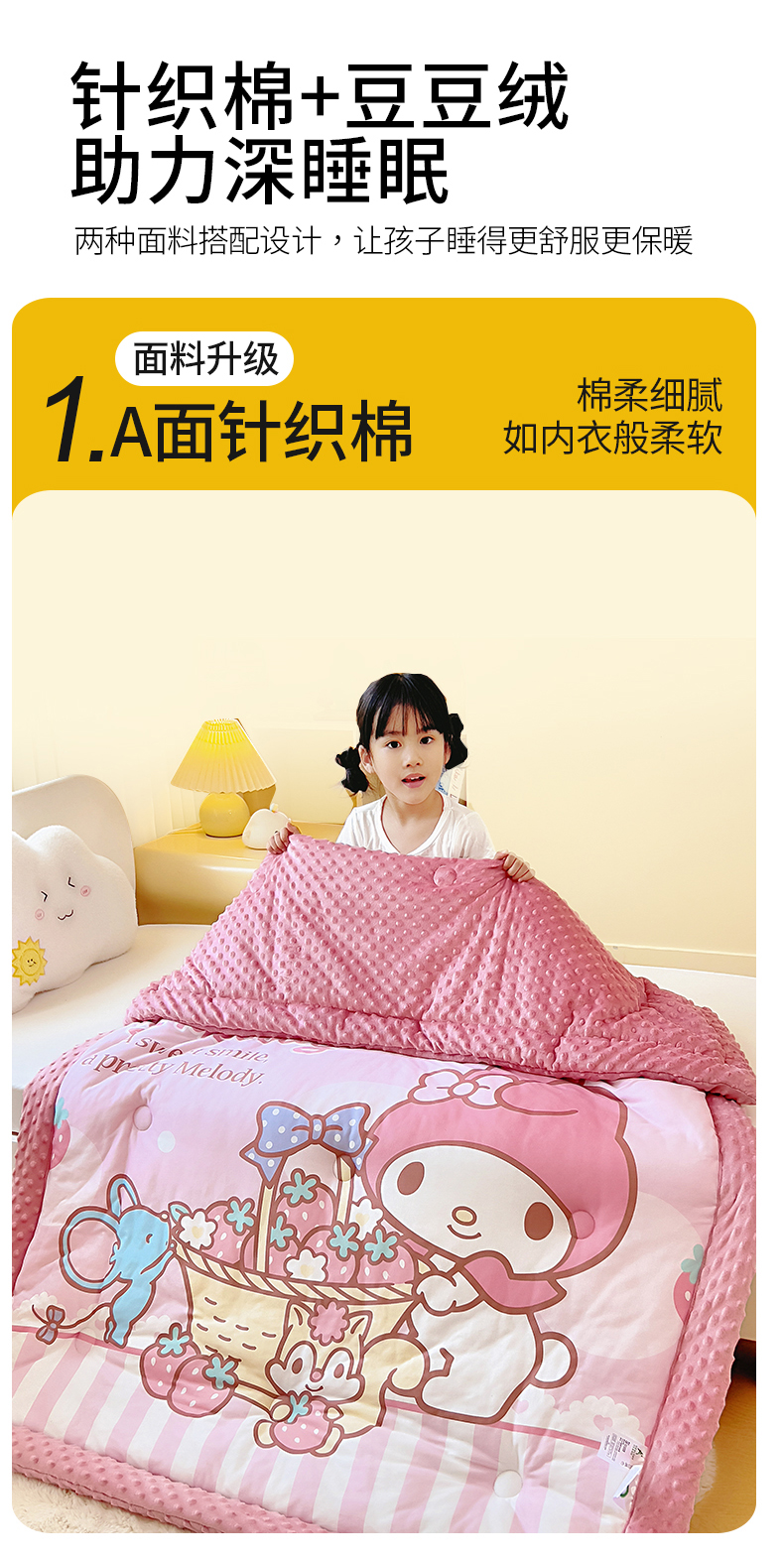 被子 > 冬被 > 吉咪兔家纺 2025新款大版三丽鸥库洛米儿童豆豆被针织棉幼儿园宝宝午睡春秋四季婴儿被子被芯 草莓美乐蒂