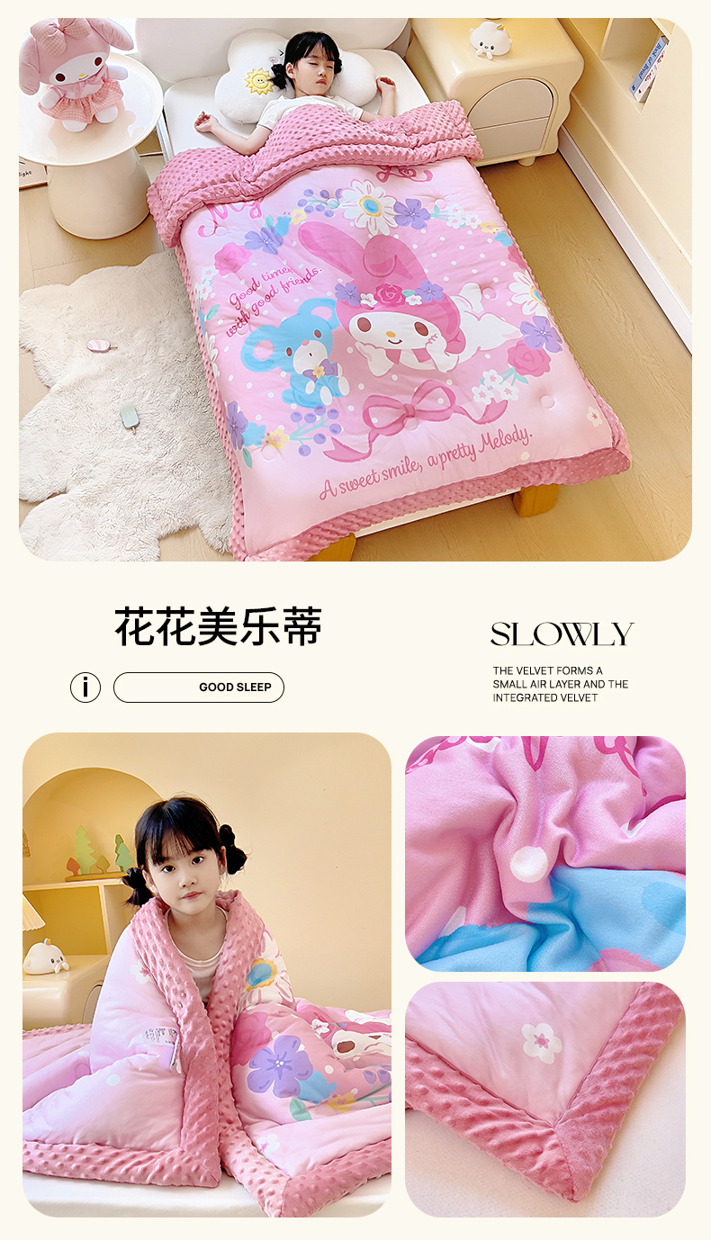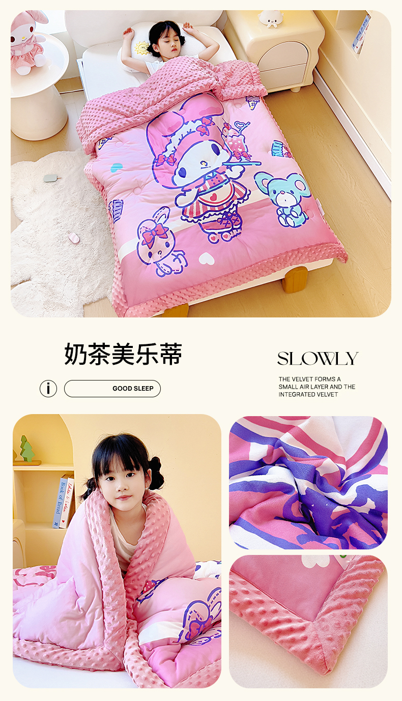(总)吉咪兔家纺 2025新款大版三丽鸥库洛米儿童豆豆被针织棉幼儿园宝宝午睡春秋四季婴儿被子被芯,草莓美乐蒂,蛋糕库洛米,汉堡玉桂狗,花花美乐蒂,奶茶美乐蒂,气球库洛米,梳妆库洛米,云朵玉桂狗