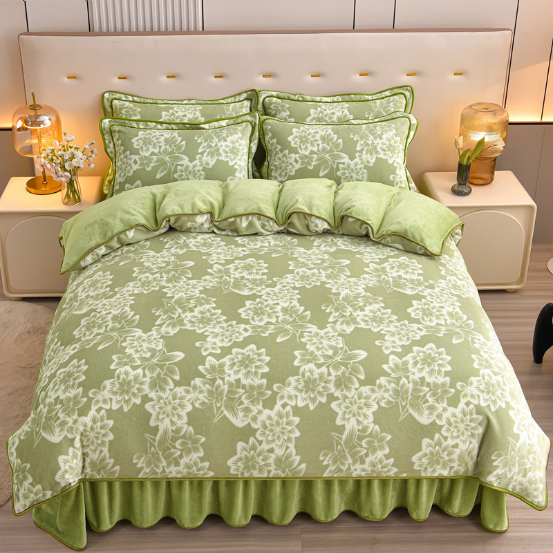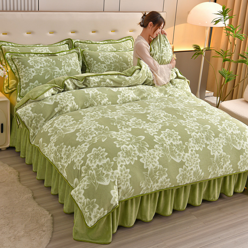 绘萱2025新品爆款8斤包边印花牛奶绒四件套床裙款法莱绒金貂貂狐 青花