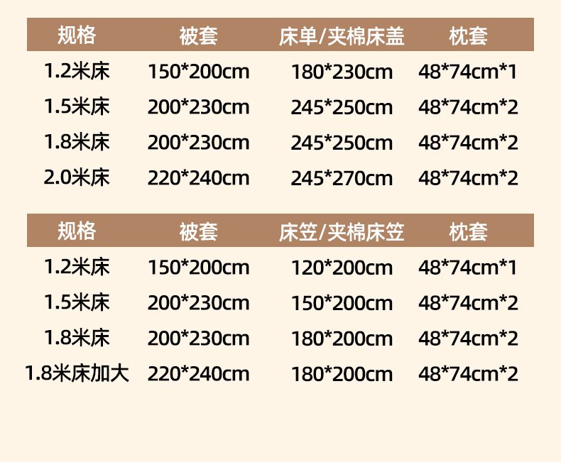 1.8m床笠款四件套 | ¥110.00 |