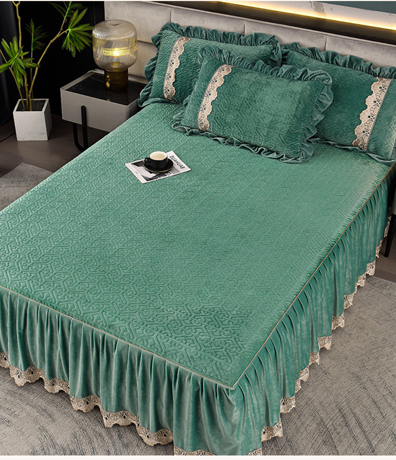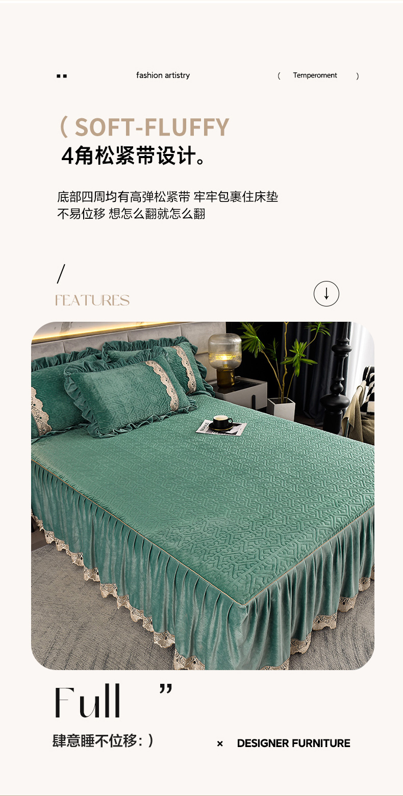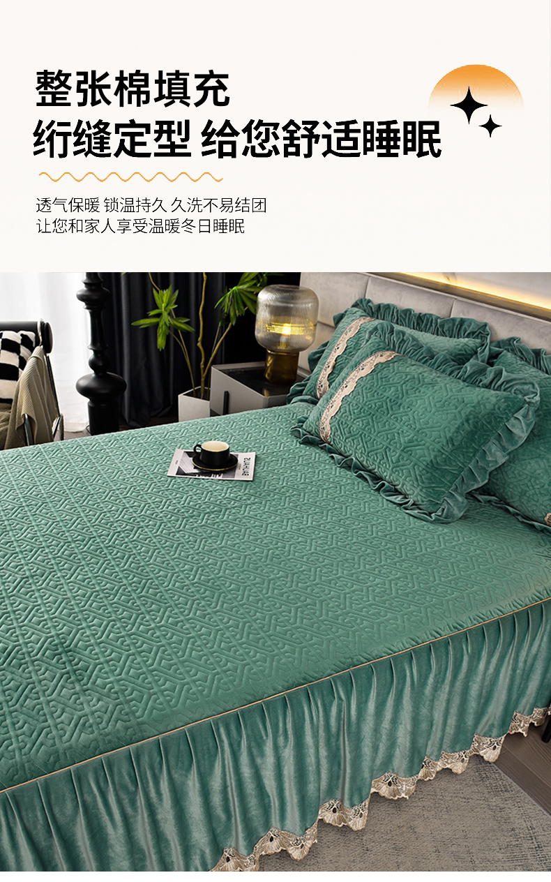 商品名称:忘忧草 2025新款婴儿绒夹棉单床裙 床裙单件-安娜系列 安娜-迷雾绿