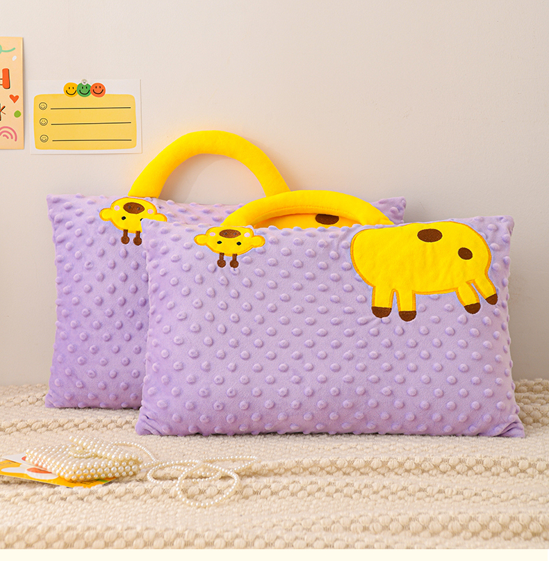 大熊枕芯 2025新款手提袋动物园豆豆绒儿童枕芯 枕套+内胆 手提款-天鹅