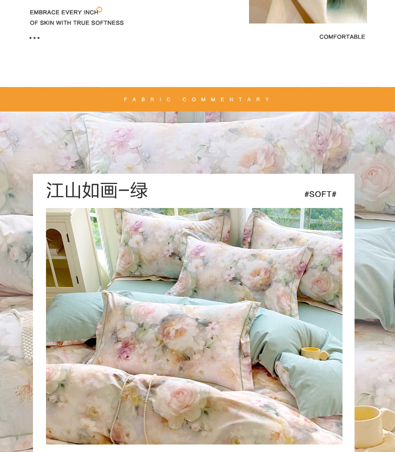 当前位置: 91家纺网 > 商品网购 > 床品套件 > 四件套 > 全棉普通四件套 > 星期三家纺 2025新款10月新款铂金全棉纯棉13372四件套 江山如画-绿