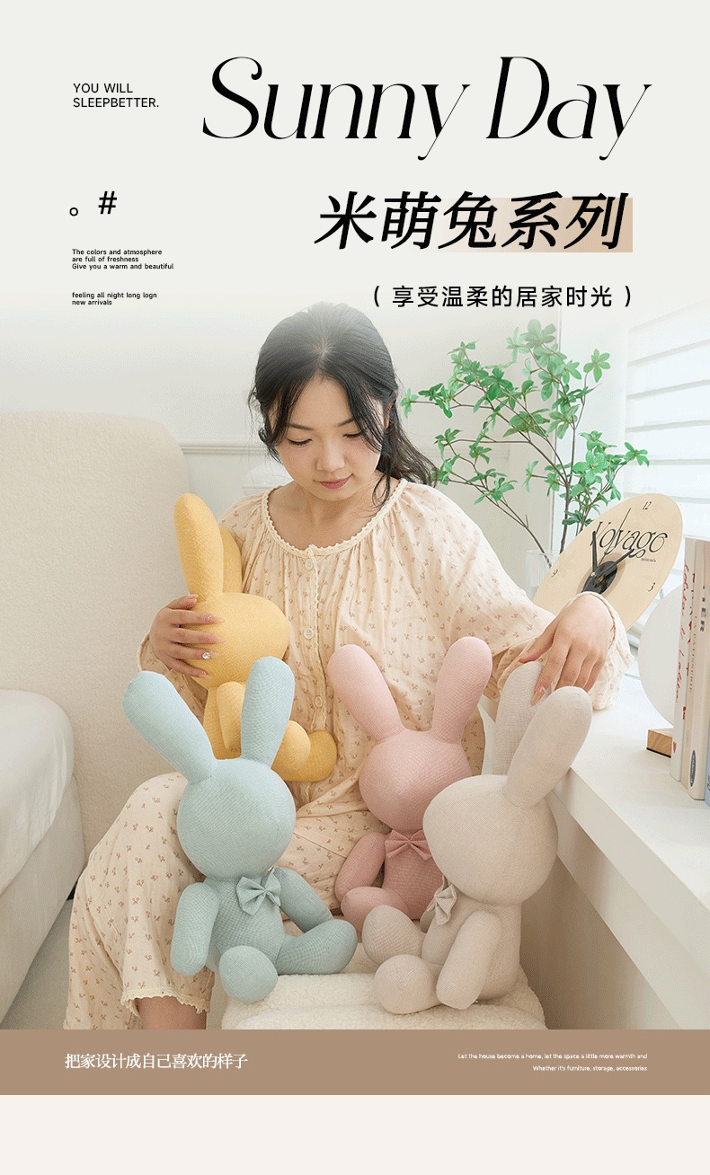 三沁家居 2025新款全棉色织水洗玩偶米萌兔系列 组合图 40x26x20cm/只