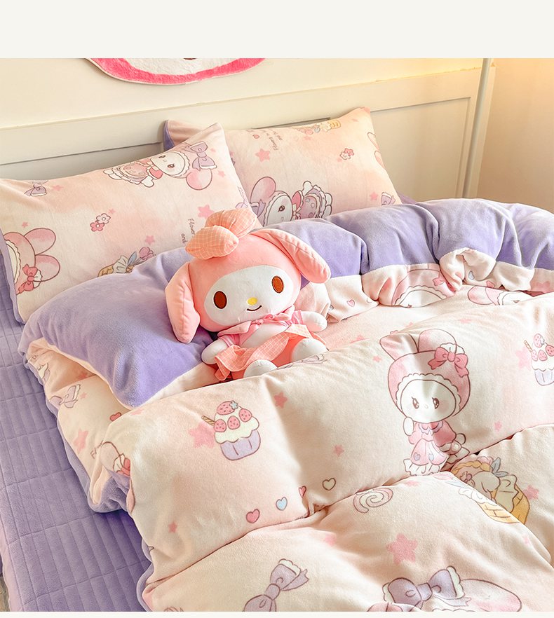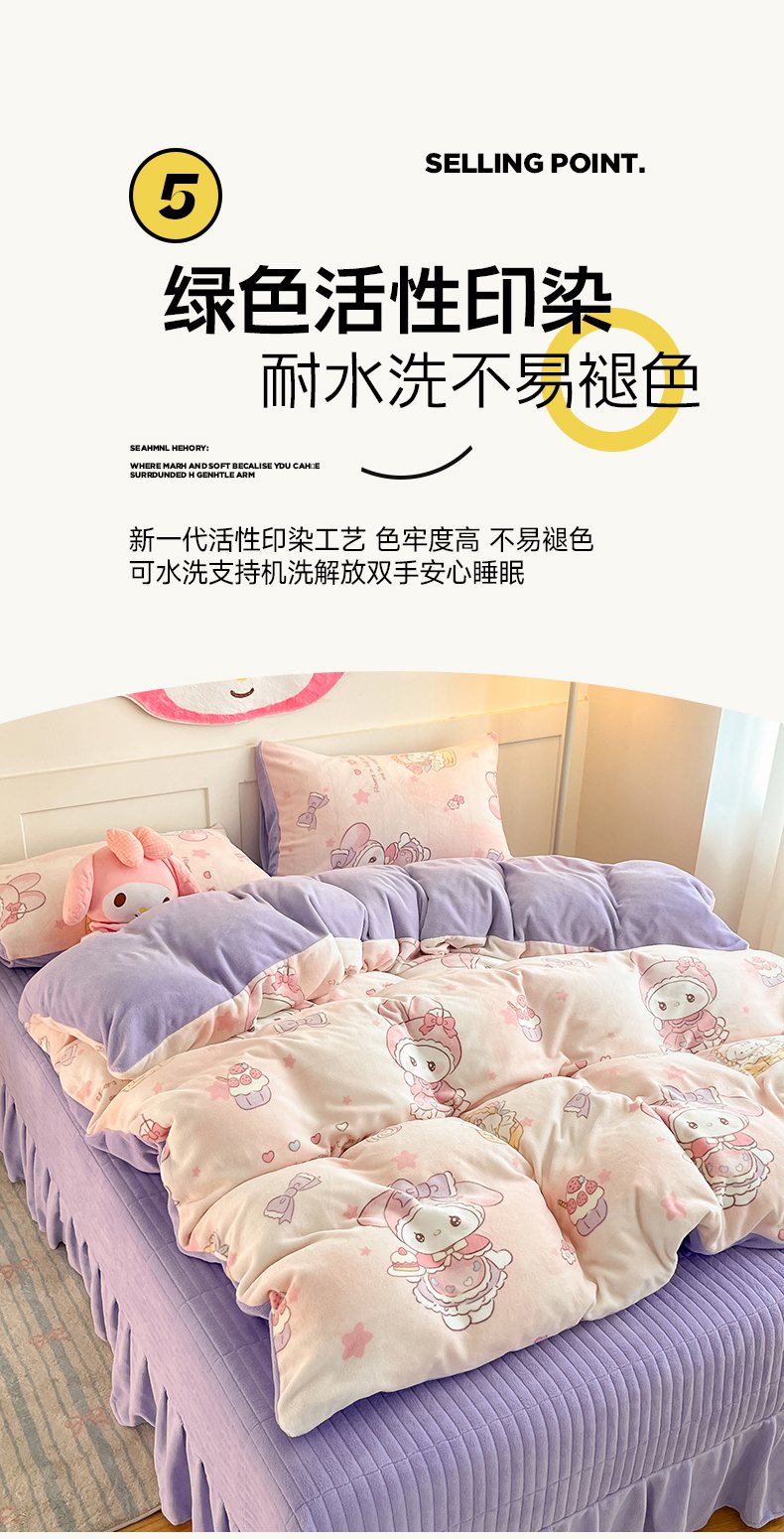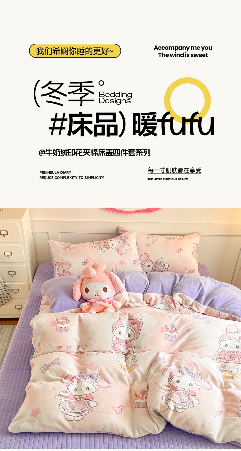 (总)摩妮卡 2025新款小清新加厚260克牛奶绒泡泡绒四件套,甜系兔兔,幽香恋曲,软萌萌小兔,洛丽兔,紫韵美乐蒂,萌兔时光,凯蒂小熊,软萌小猫,暮雅,快乐每一天,花园狗,奶蓝玉桂狗,小兔甜甜酱