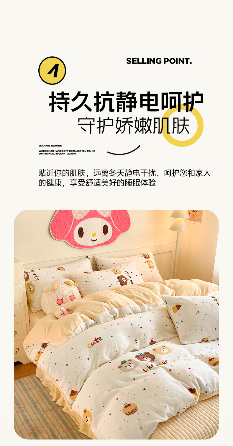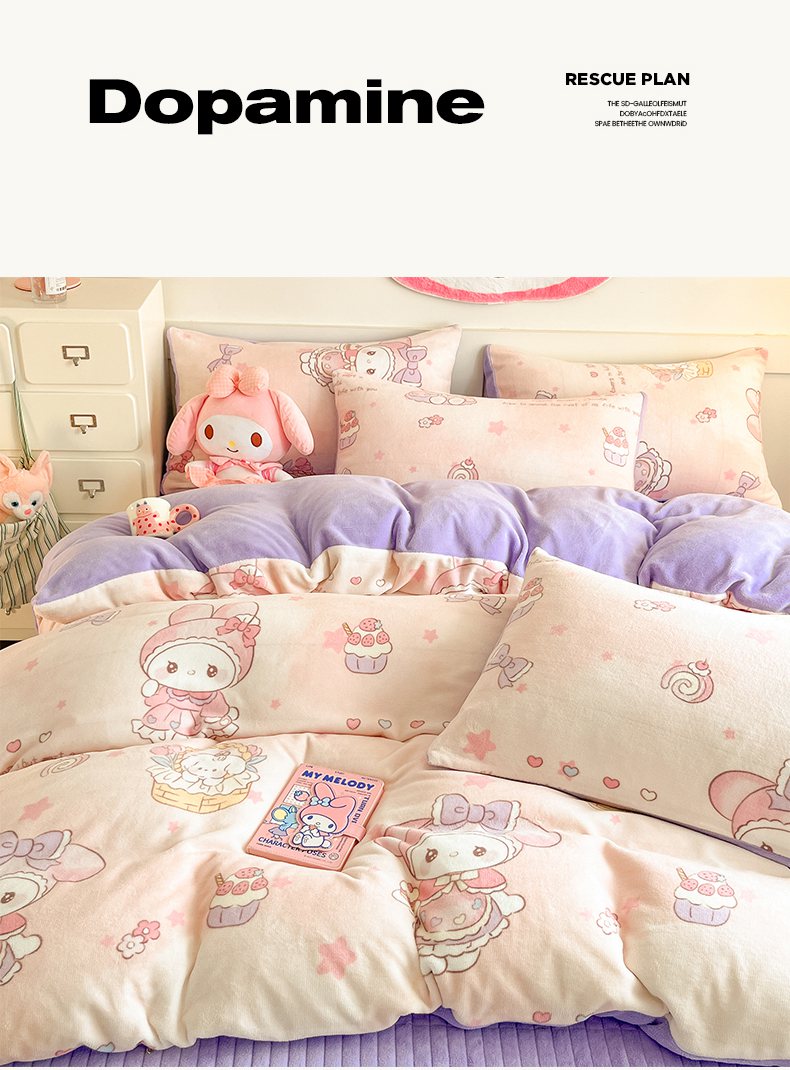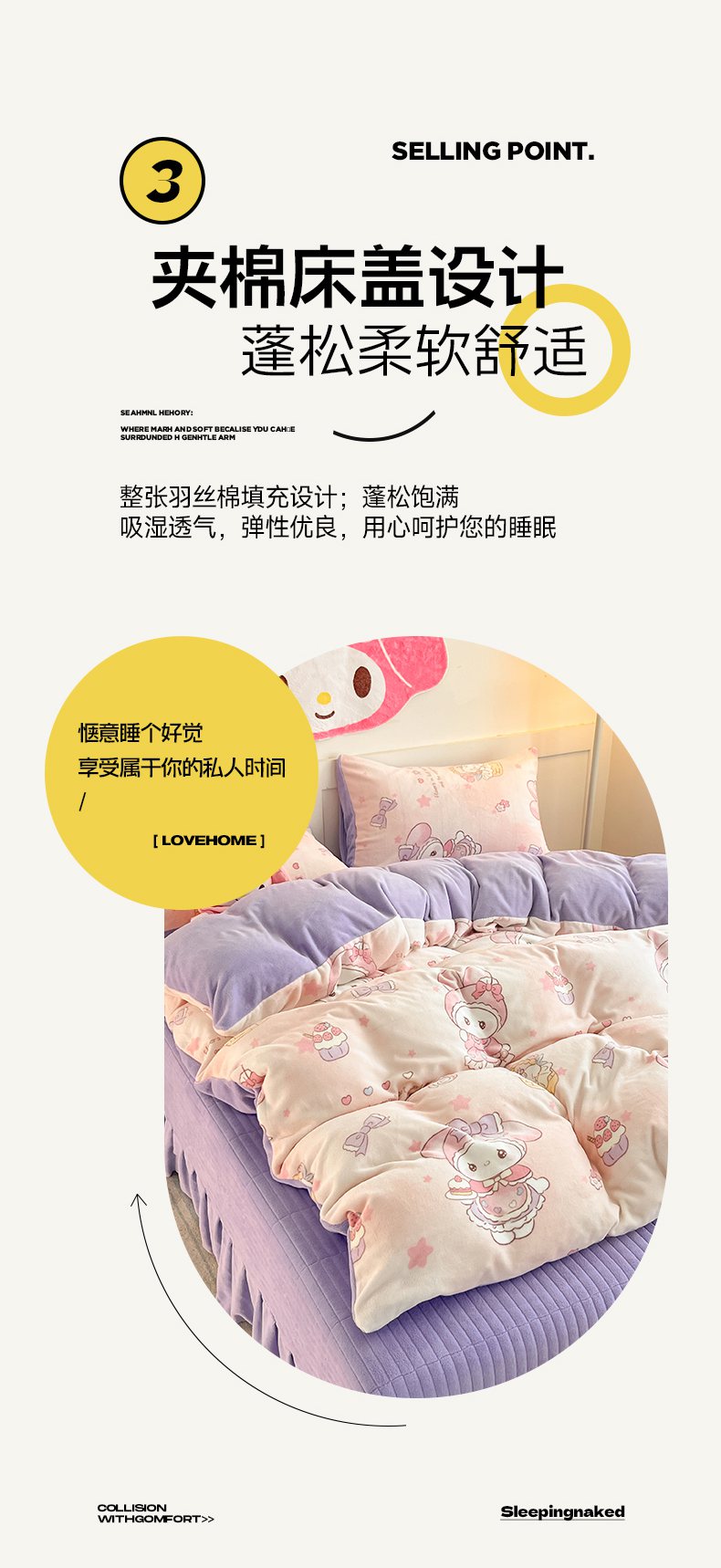 (总)摩妮卡 2025新款小清新加厚260克牛奶绒泡泡绒四件套,甜系兔兔,幽香恋曲,软萌萌小兔,洛丽兔,紫韵美乐蒂,萌兔时光,凯蒂小熊,软萌小猫,暮雅,快乐每一天,花园狗,奶蓝玉桂狗,小兔甜甜酱