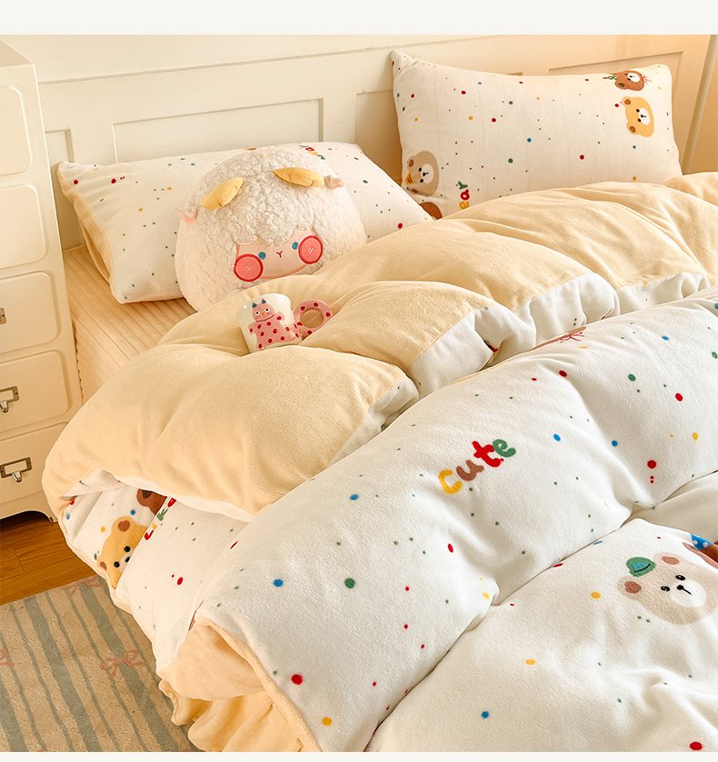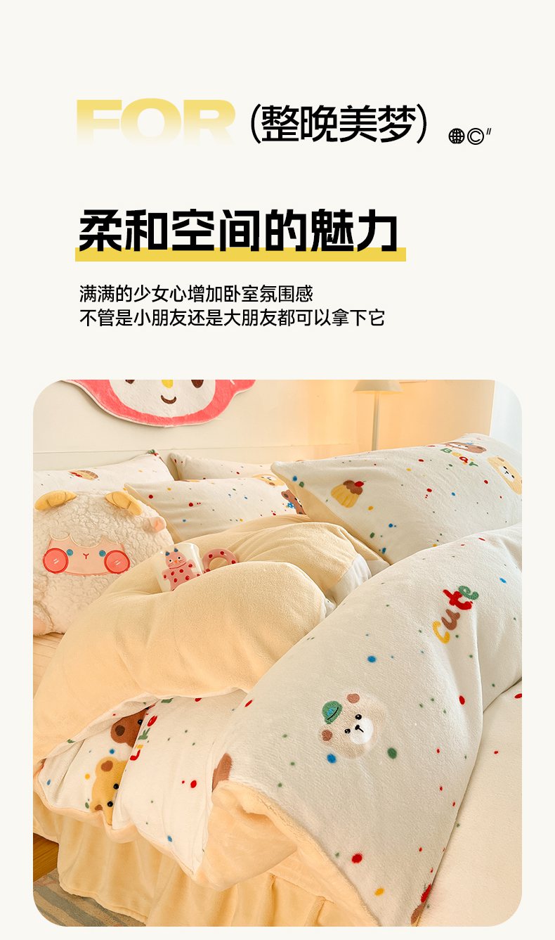 (总)摩妮卡 2025新款卡通牛奶绒刺绣四件套系列,甜点世界,猫咪甜心店,垂耳宝宝,朋友之交,甜点师,兔兔制作屋,小熊派对日