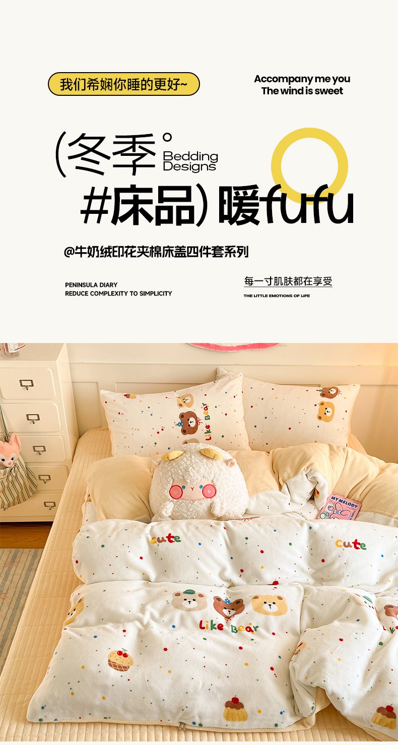 (总)摩妮卡 2025新款小清新系列印花牛奶绒夹棉床笠三件套,三只小熊,巴洛克暖阳,呆萌熊猫,嘟嘟狗,花儿朵朵,花间密语,花溪,快乐小白,萌宠乐园,秘密花园,奇幻兔,琪琪兔,情系花香,童趣乐园,旺星人,小可爱,心元素,修狗