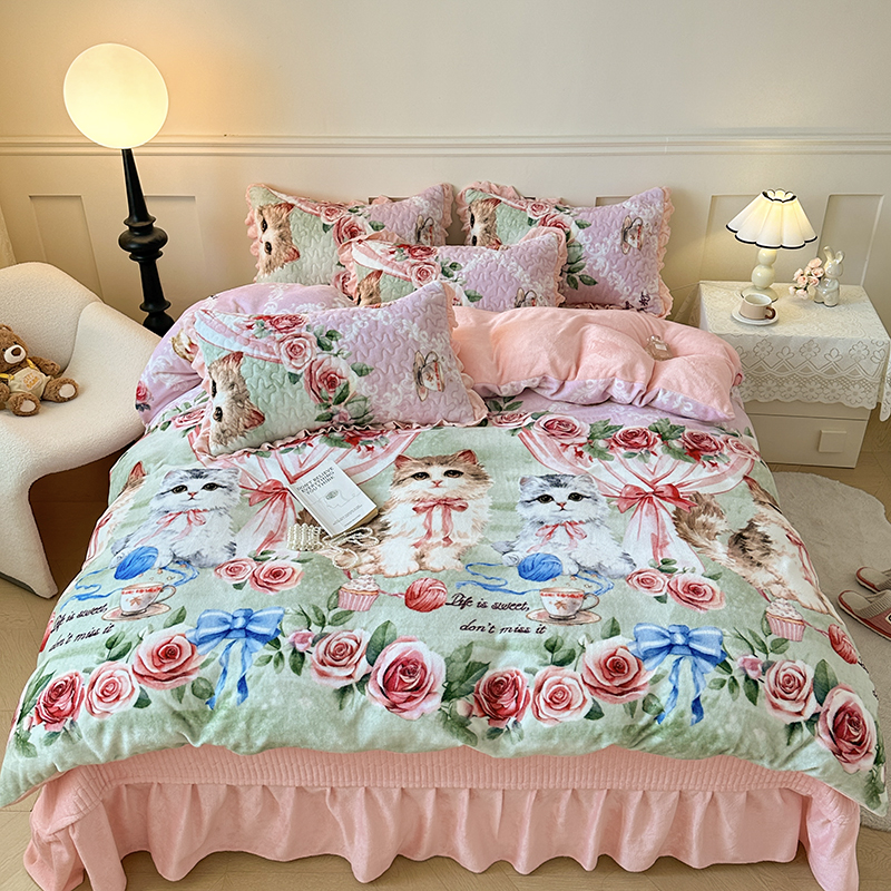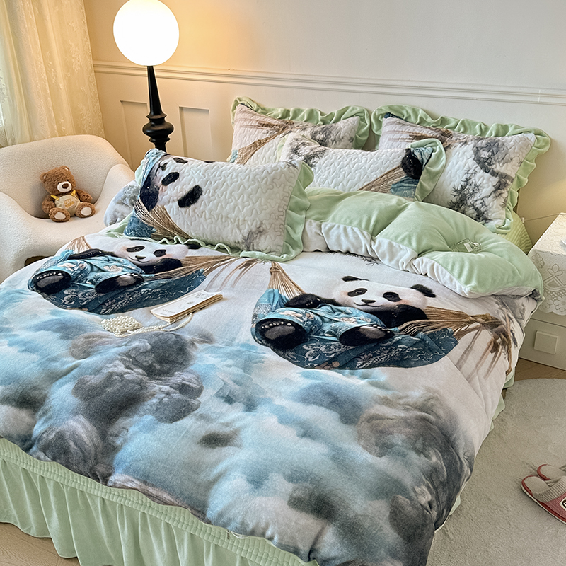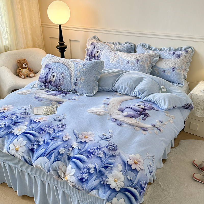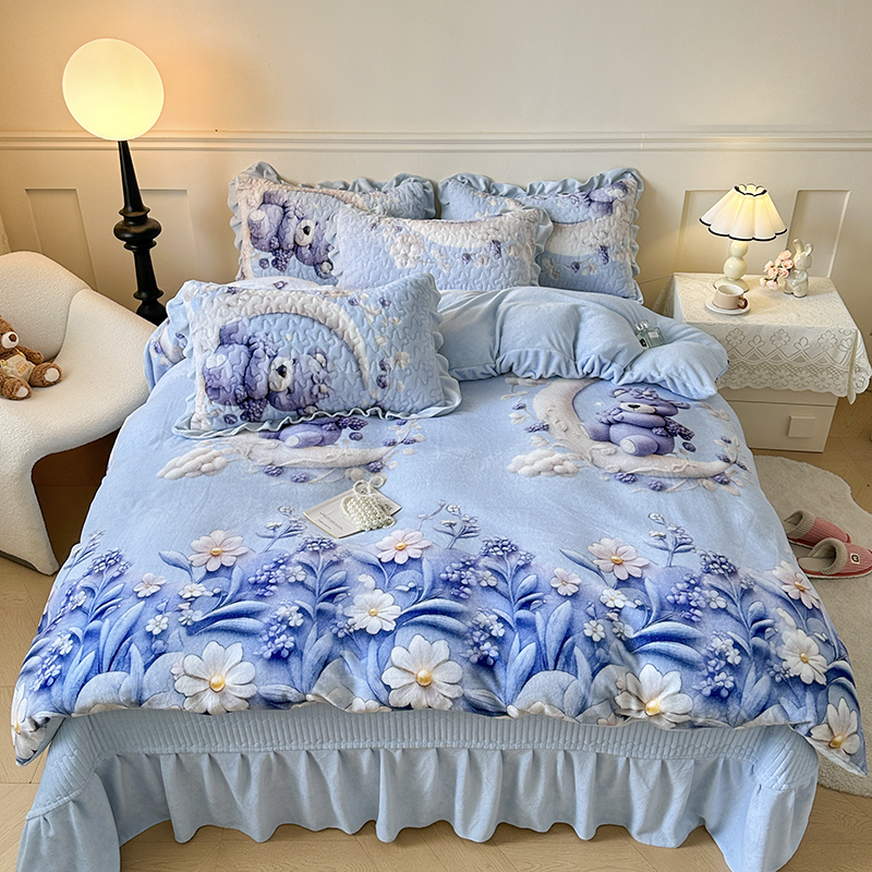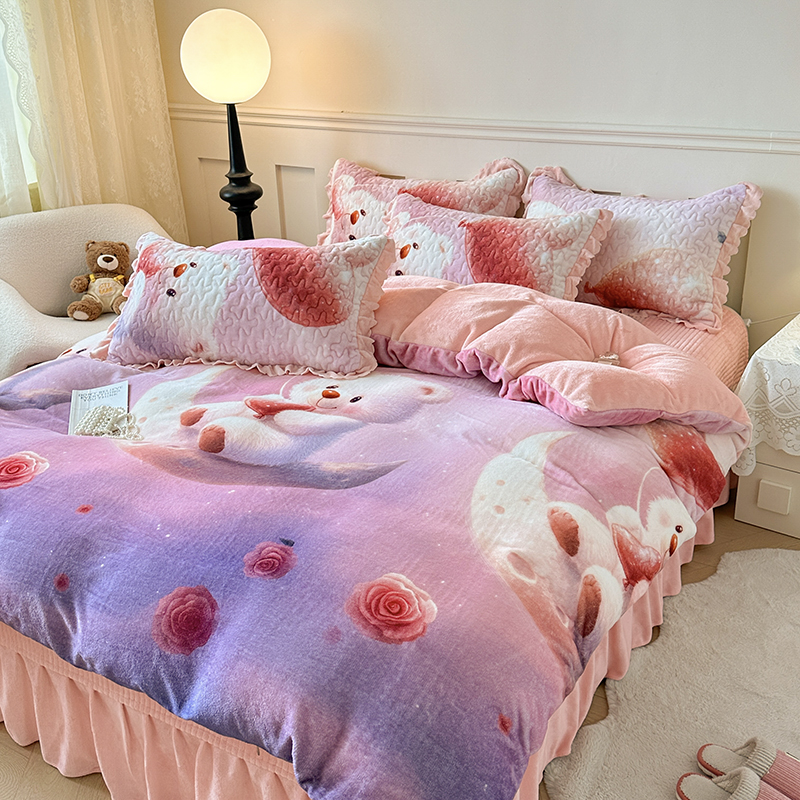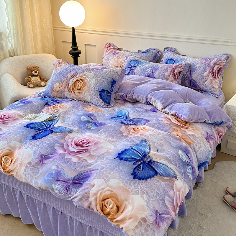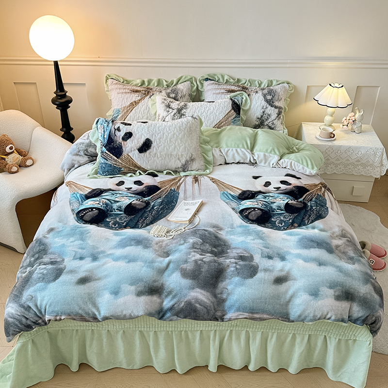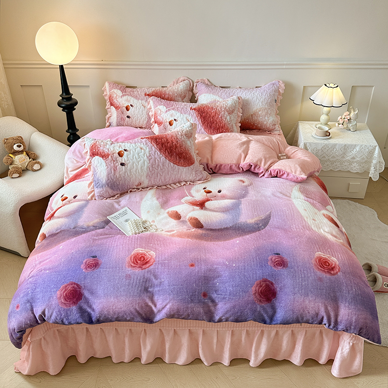 (总)雅眠居 2025直播爆款5D大版数码印花牛奶绒床盖四件套宝宝绒床裙