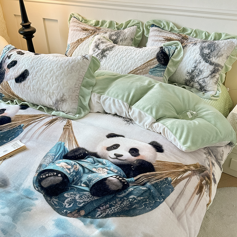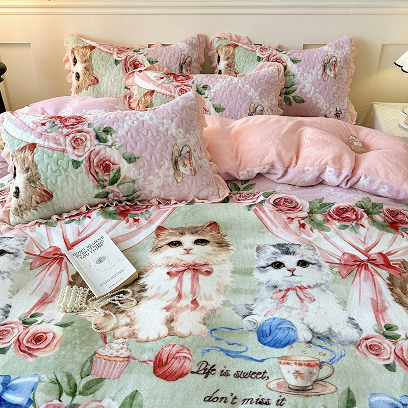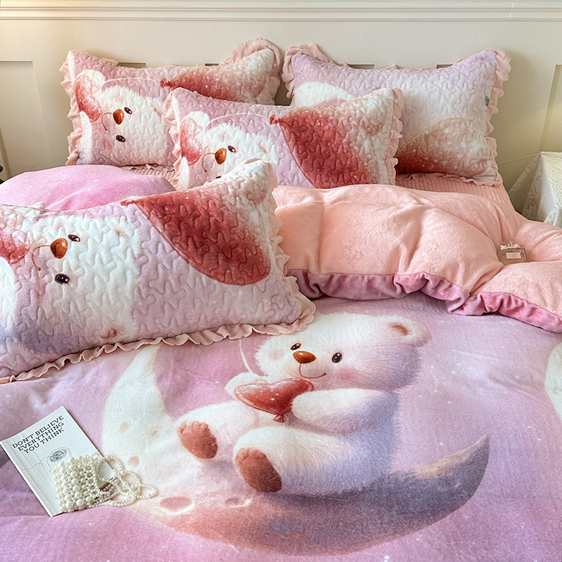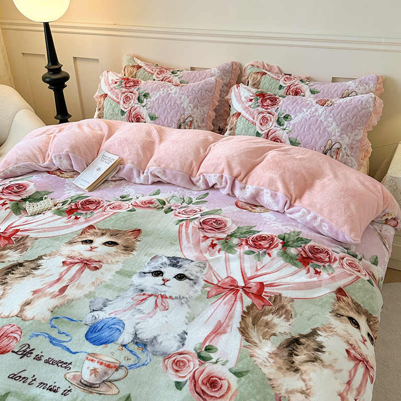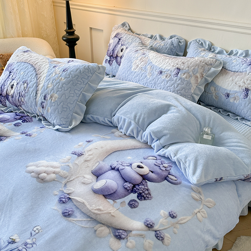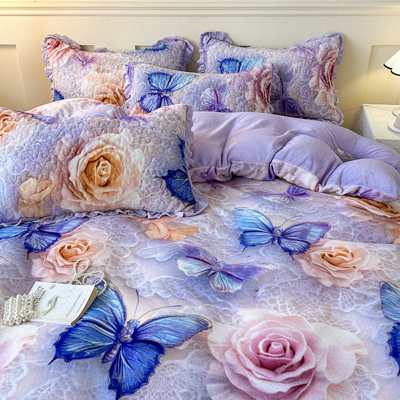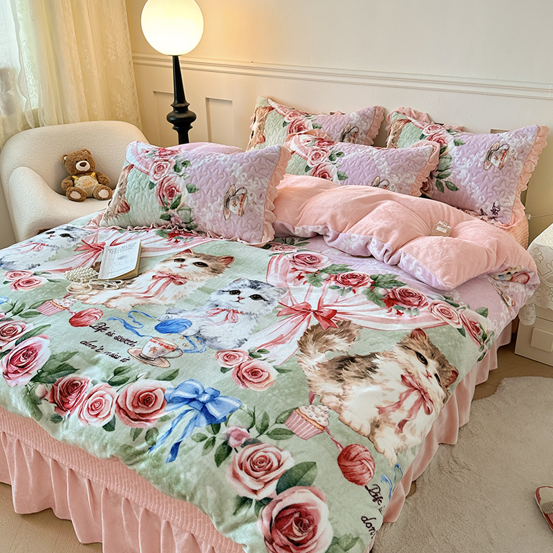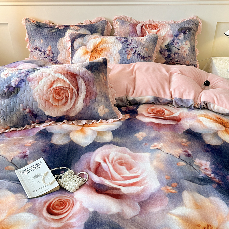 (总)雅眠居 2025直播爆款5D大版数码印花牛奶绒床盖四件套宝宝绒床裙