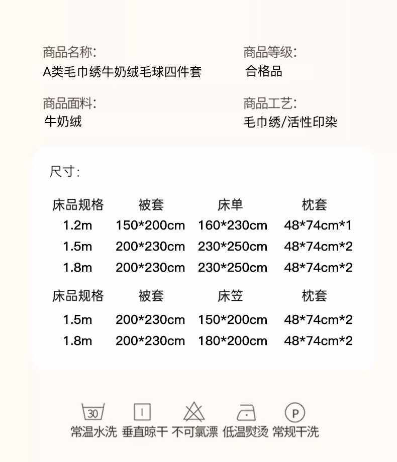 商品名称:(总)寐居家纺 2025新款毛球毛巾绣牛奶绒四件套