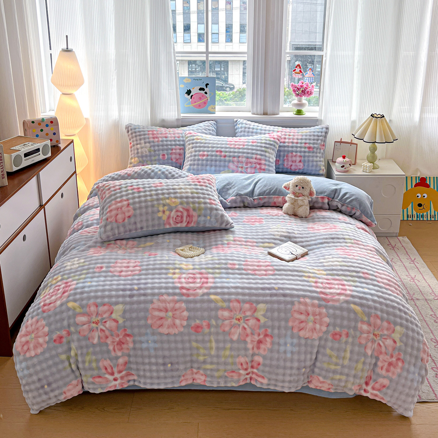 典曼家纺 2025新款亲肤舒适保暖泡泡绒四件套 甜心小兔