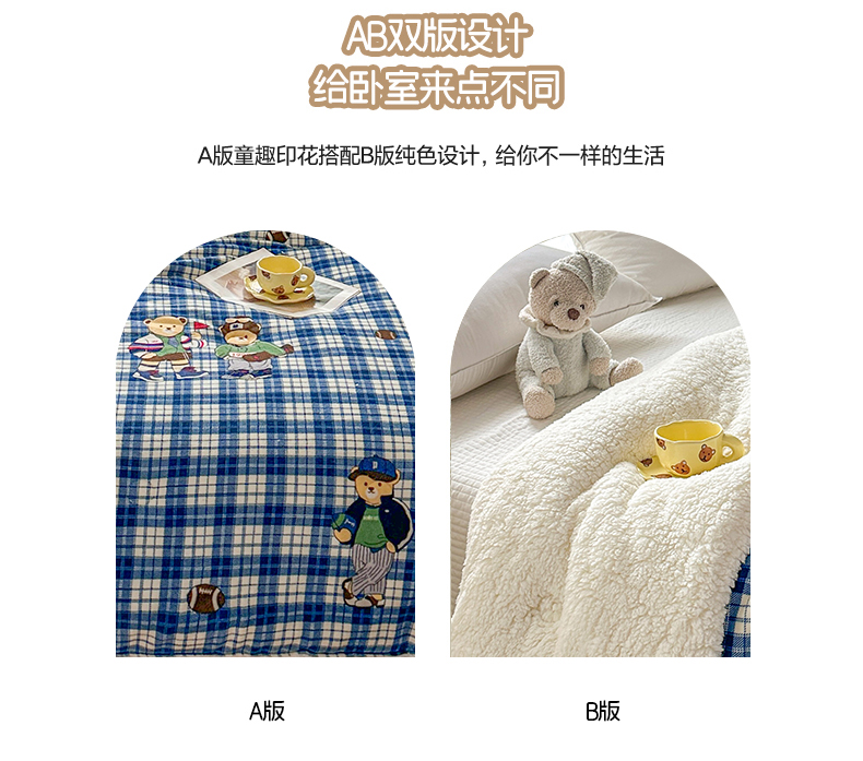 商品名称:爱彼家纺 2025新款日韩奶油风羊羔绒+牛奶绒可爱卡通被子被芯秋被冬被被子被芯 粉红甜点小狗