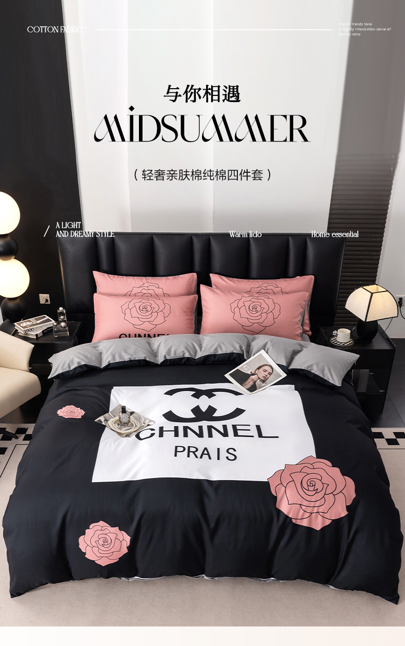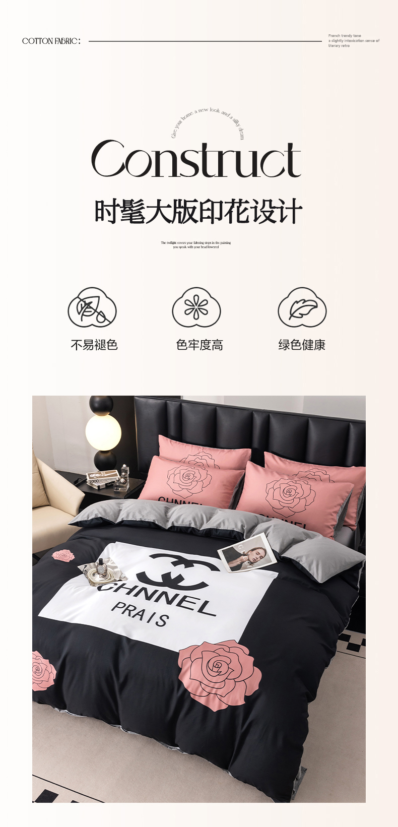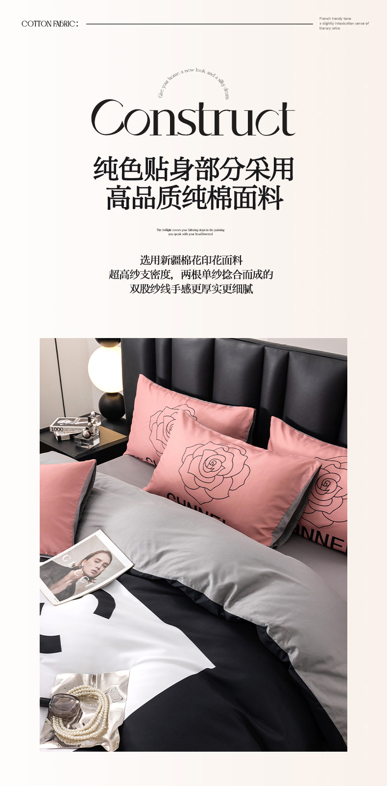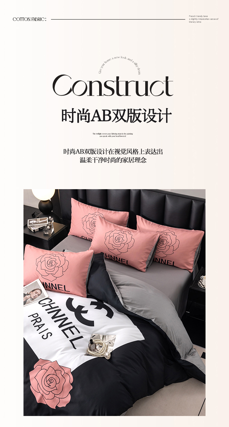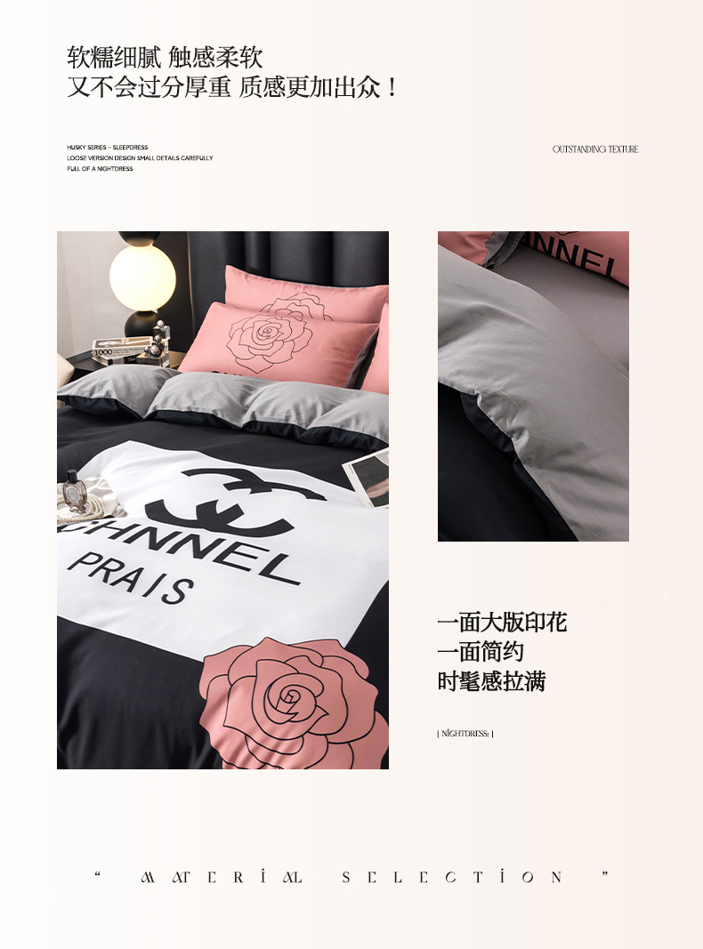 (总)色鬼布艺高端家居主号 2025新款轻奢亲肤纯棉数码印花网红热款四件套,豹纹香,白金V,白香花,大H,黑白迪,黑白V,灰迪,咖古,克莱因,慕斯小姐,山茶花,星空