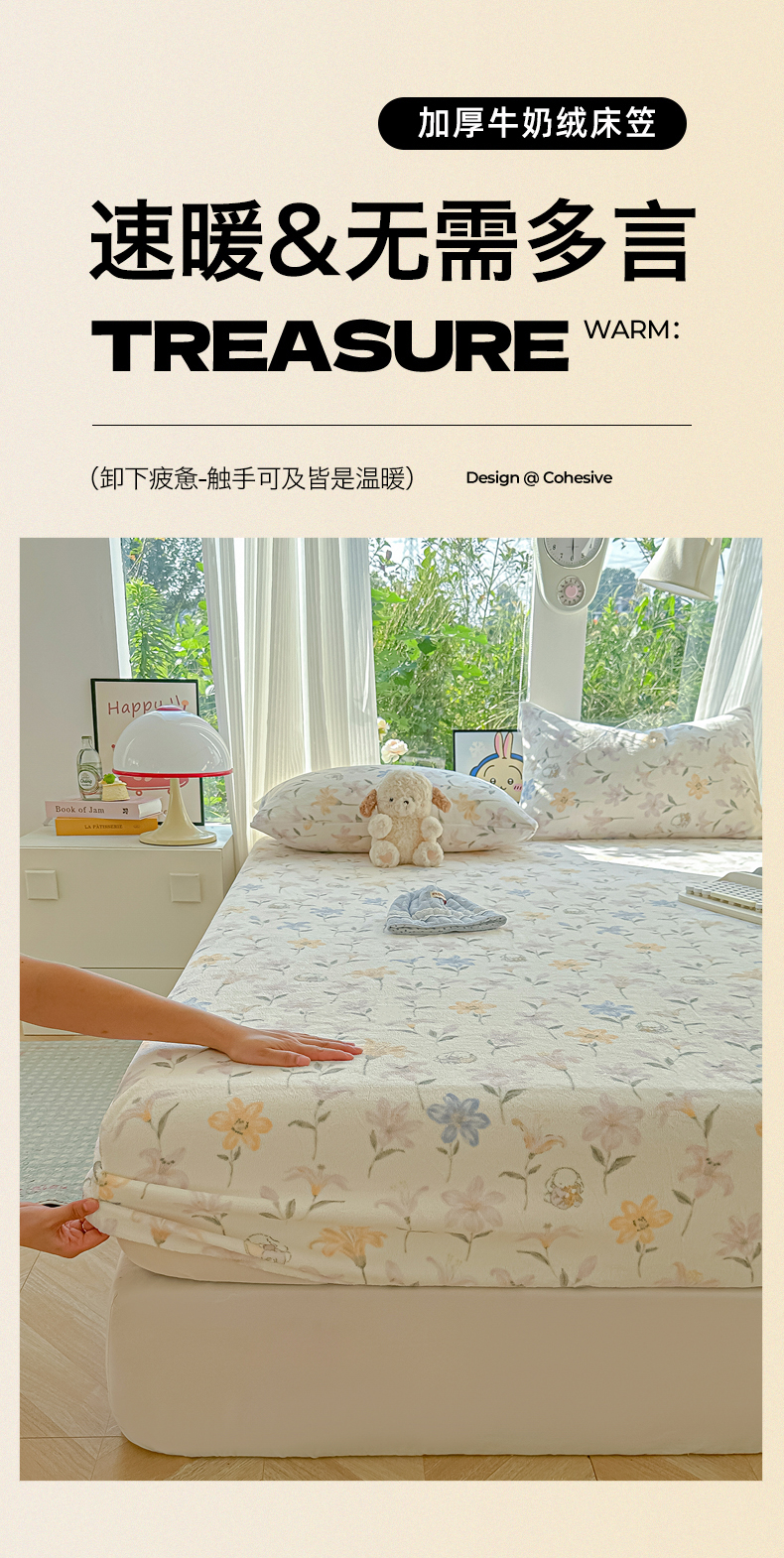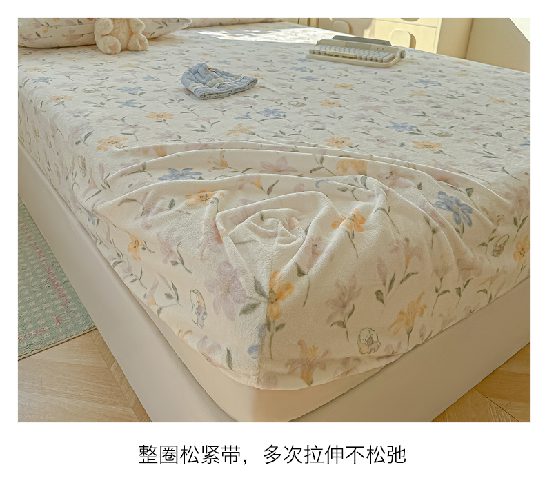 • 91家纺网 家纺一手货源 找家纺 沐芷 2025 加厚高克重牛奶绒床笠单件/床笠三件套  床笠款床罩床垫保护套罩 【绒】百合兔