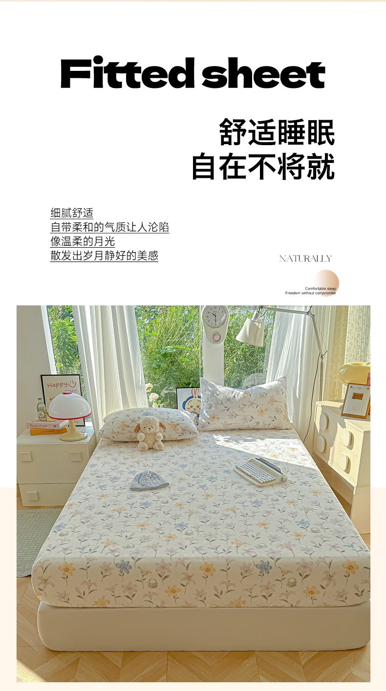 (总)沐芷 2026 A类105g水洗棉四件套超柔手感床上宿舍三件套床单被套,奶味圆饼,浅蓝格,波点狗,彩色星星,风与爱,复古小熊,开心时光,浅粉格,小花园,晕染爱心