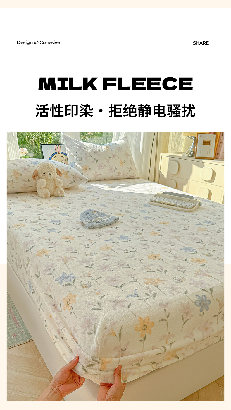 沐芷 2025 加厚高克重牛奶绒床笠单件/床笠三件套 床笠款床罩床垫保护套罩 【绒】百合兔