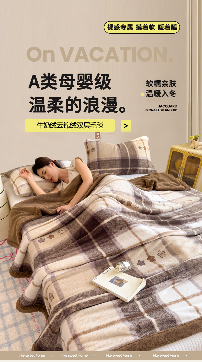 当前位置: 91家纺网 > 商品网购 > 毛毯休闲毯绒毯 > 毛毯 > 慕木家纺 2025新款高克重印花牛奶绒云锦绒双层毛毯毛毯毯子(可供跨境提供买家秀) 双层毛毯-海洋之莓+灰