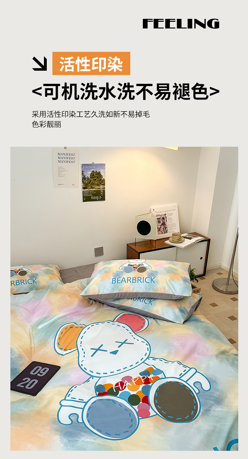 商品名称:色鬼布艺高端家居主号 2025新款现代简约网红款四季棉四件套 萌熊队长