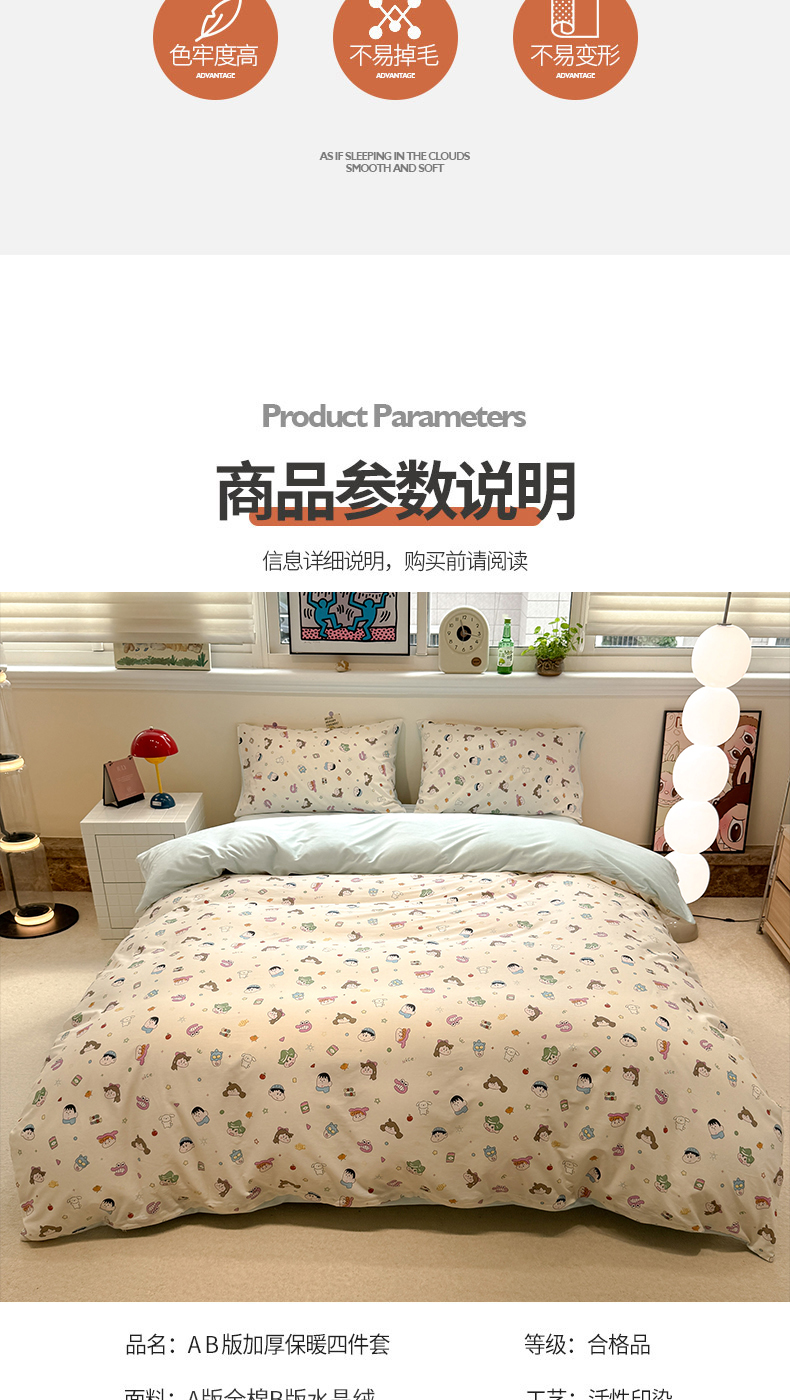 (总)怡家居 2025新款秋冬保暖全棉加绒四件套,爱丽花园,春色,光年,花边兔,蜡笔小新,时光里,小红果-咖,小红果-蓝,小蘑菇,QQ乐园