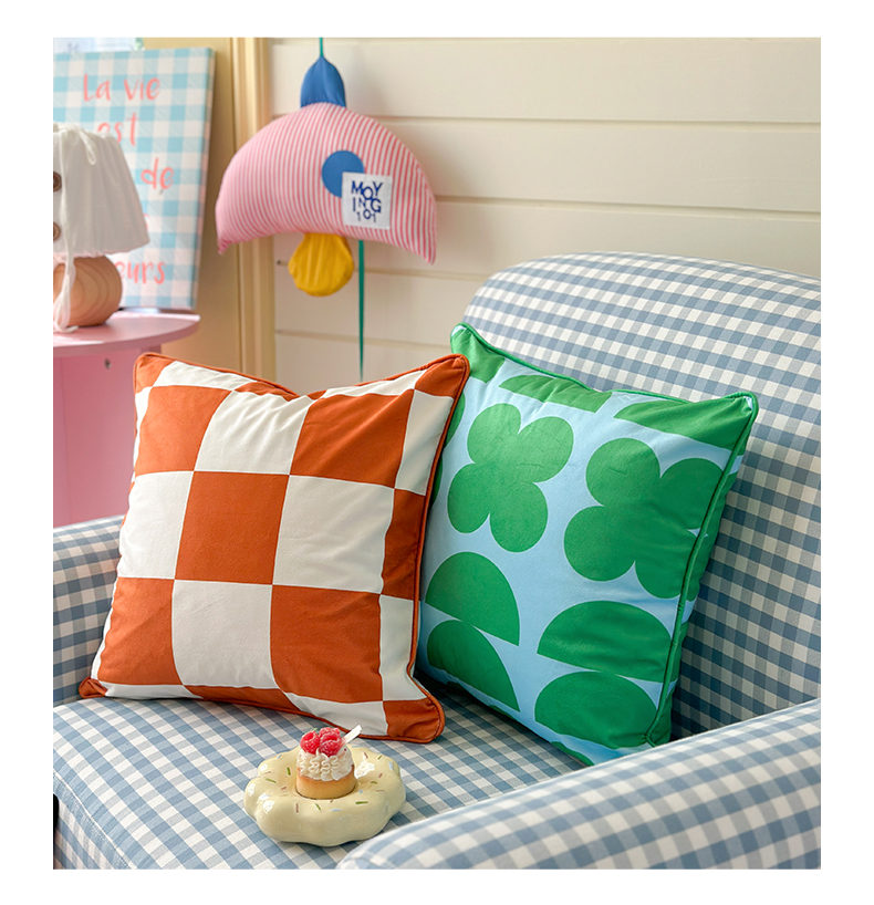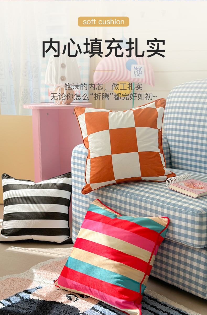(总)美茉家居 2025新款荷兰绒丝绒炫彩糖果抱枕,彩虹条,橙方块,黑白条,绿四叶