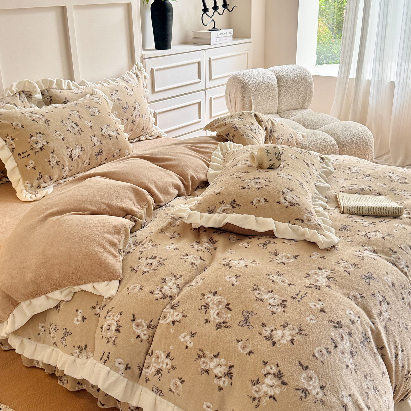 当前位置: 91家纺网 > 商品网购 > 床品套件 > 四件套 > 牛奶绒四件套 > 潘朵拉家纺 2025新款法式牛奶绒双层花边四件套 紫苏