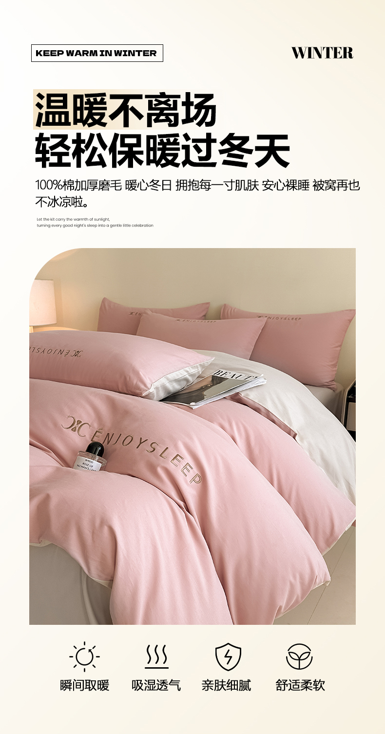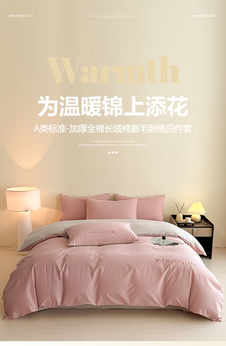 当前位置: 91家纺网 > 商品网购 > 床品套件 > 四件套 > 长绒棉四件套 > 拼社家纺 2025秋冬A类全棉加厚磨毛四件套刺绣纯棉不掉毛四件套-缪斯(提供买家秀) 缪斯-藕荷粉+印月灰