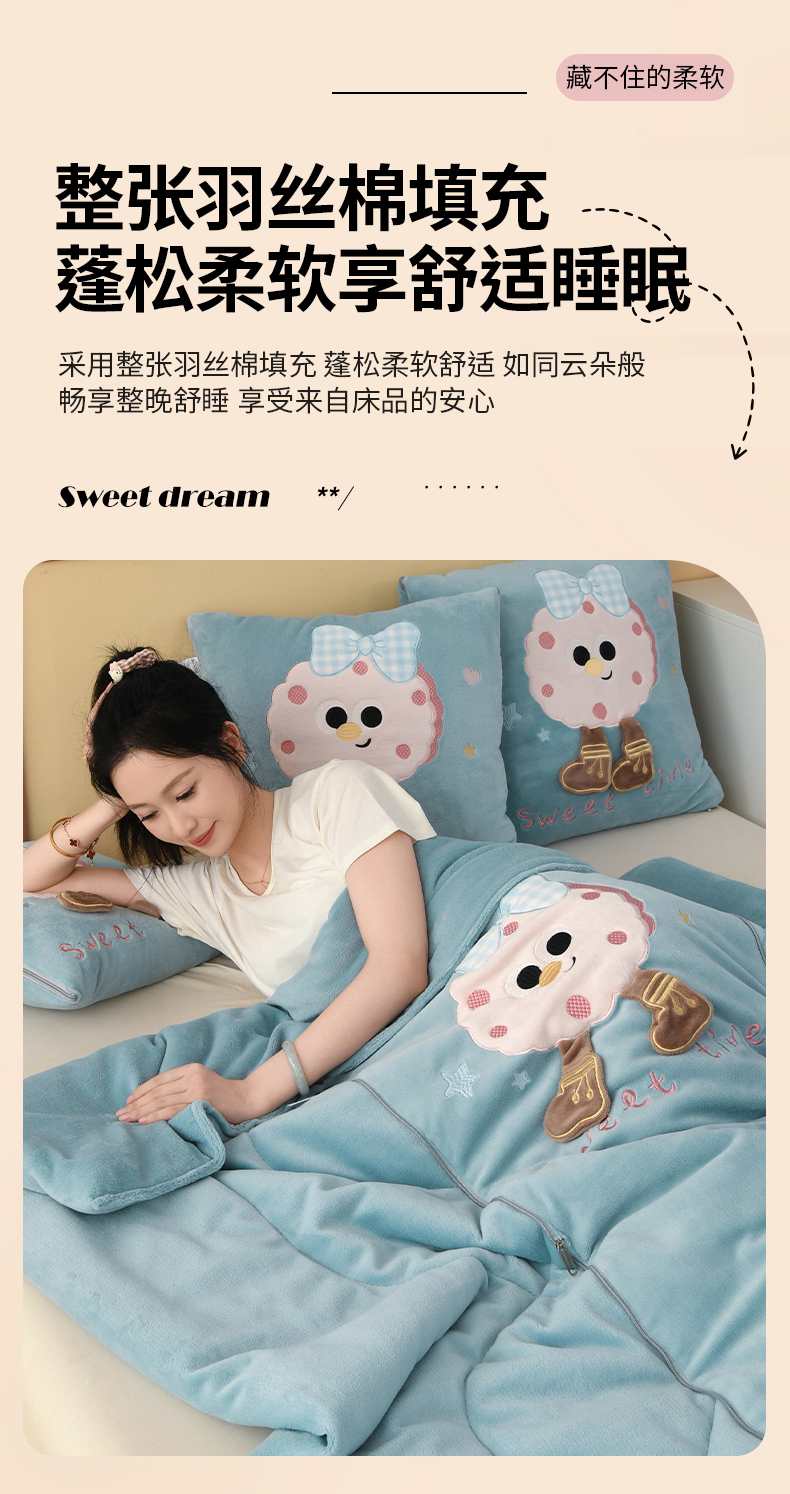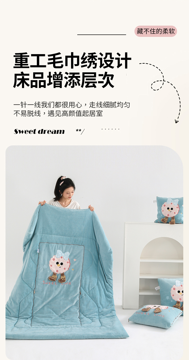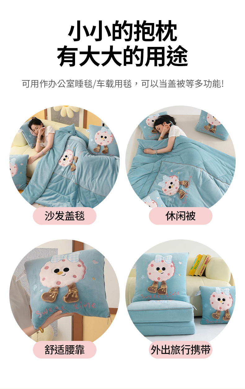 商品名称:翰轩家居 2025新款牛奶绒抱枕被泡芙公主系列 泡芙公主-蓝