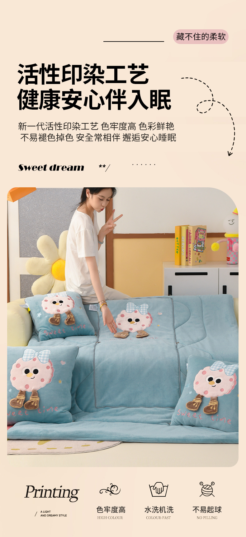 (总)翰轩家居 2023新款全棉印花小清新豆豆绒抱枕被,草莓粉,草莓蓝,春晓蓝,花语黄,静秋,琉璃,萌萌兔,幽兰,油画格韵,布拉格,粉色小熊,花园漫步,浪漫猫,心想事橙,辛巴达,遇见