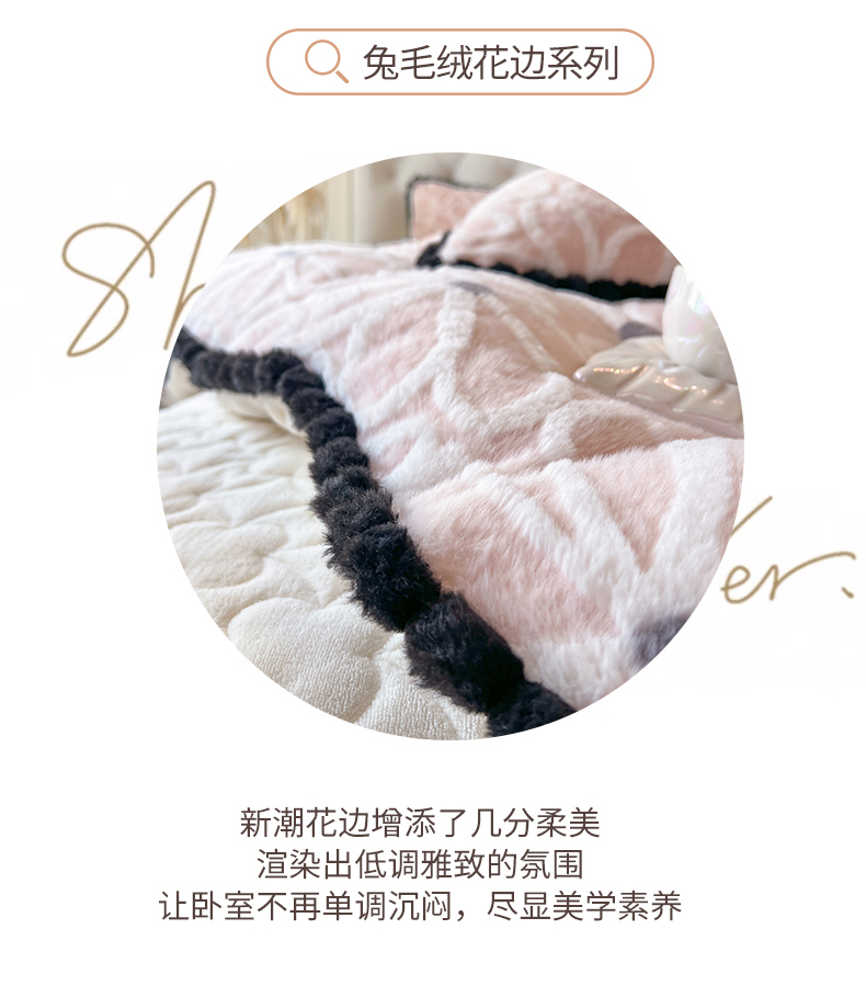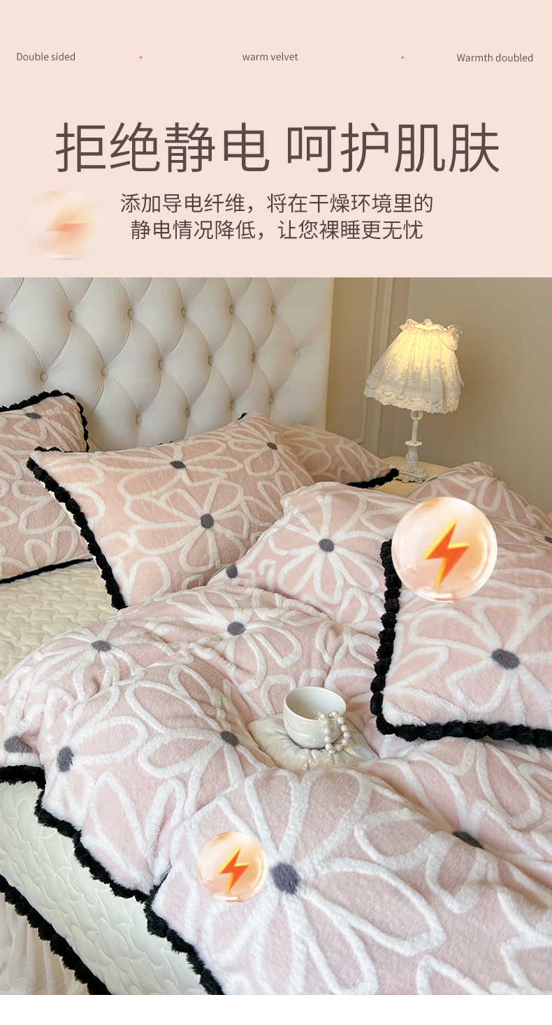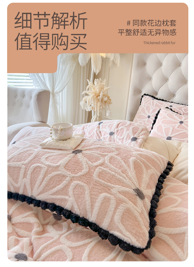 商品名称:(总)网红馆(ck家纺) 2025新款兔毛绒牛奶绒床盖四件套-花悠然