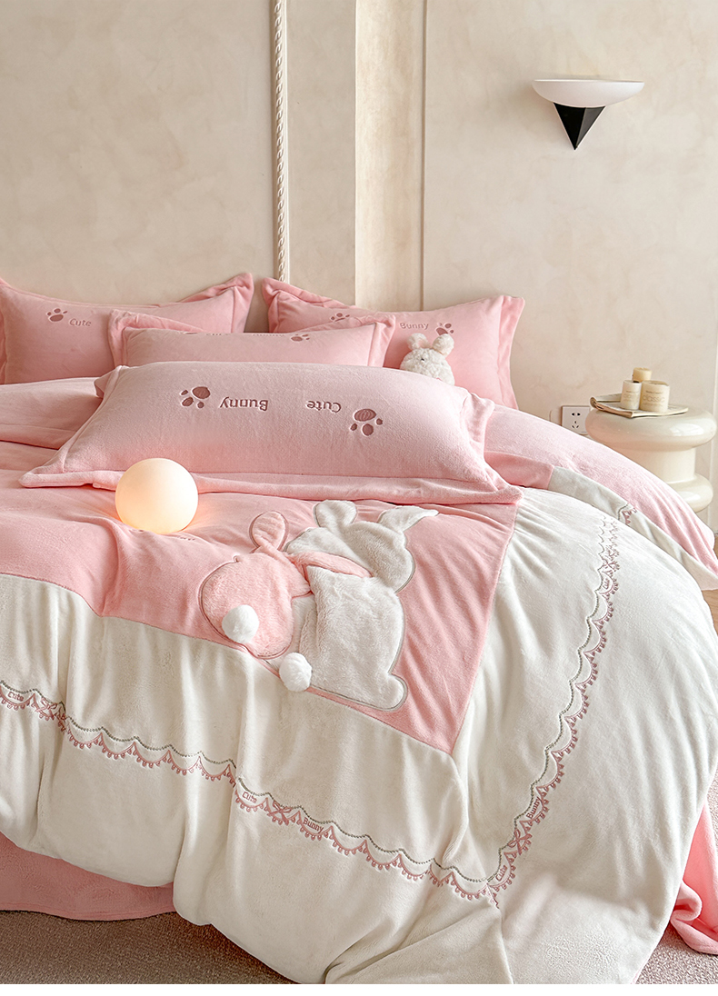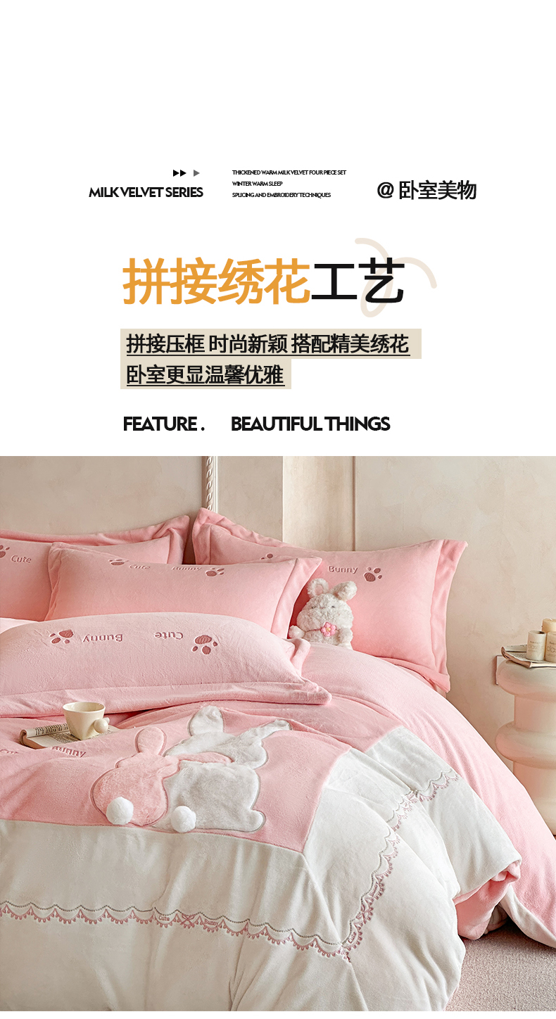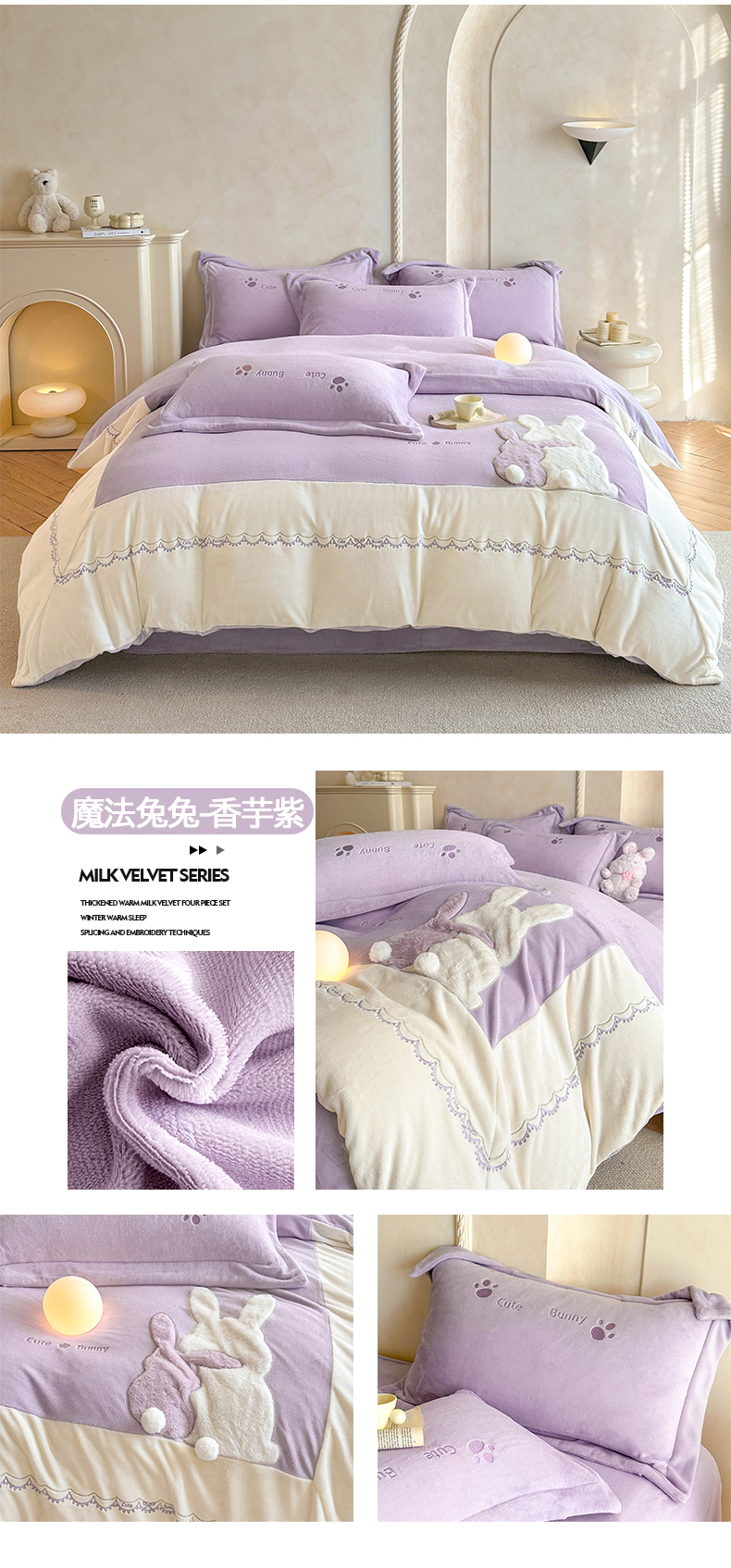 当前位置: 91家纺网 > 商品网购 > 床品套件 > 四件套 > 牛奶绒四件套 > 置顶家纺 2025新款魔法兔兔牛奶绒拼接刺绣系列四件套 魔法兔兔-粉