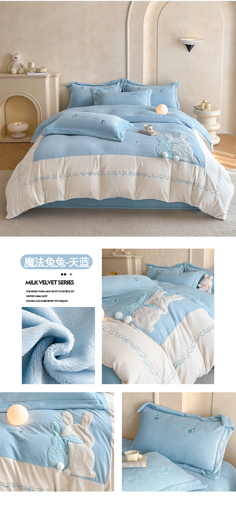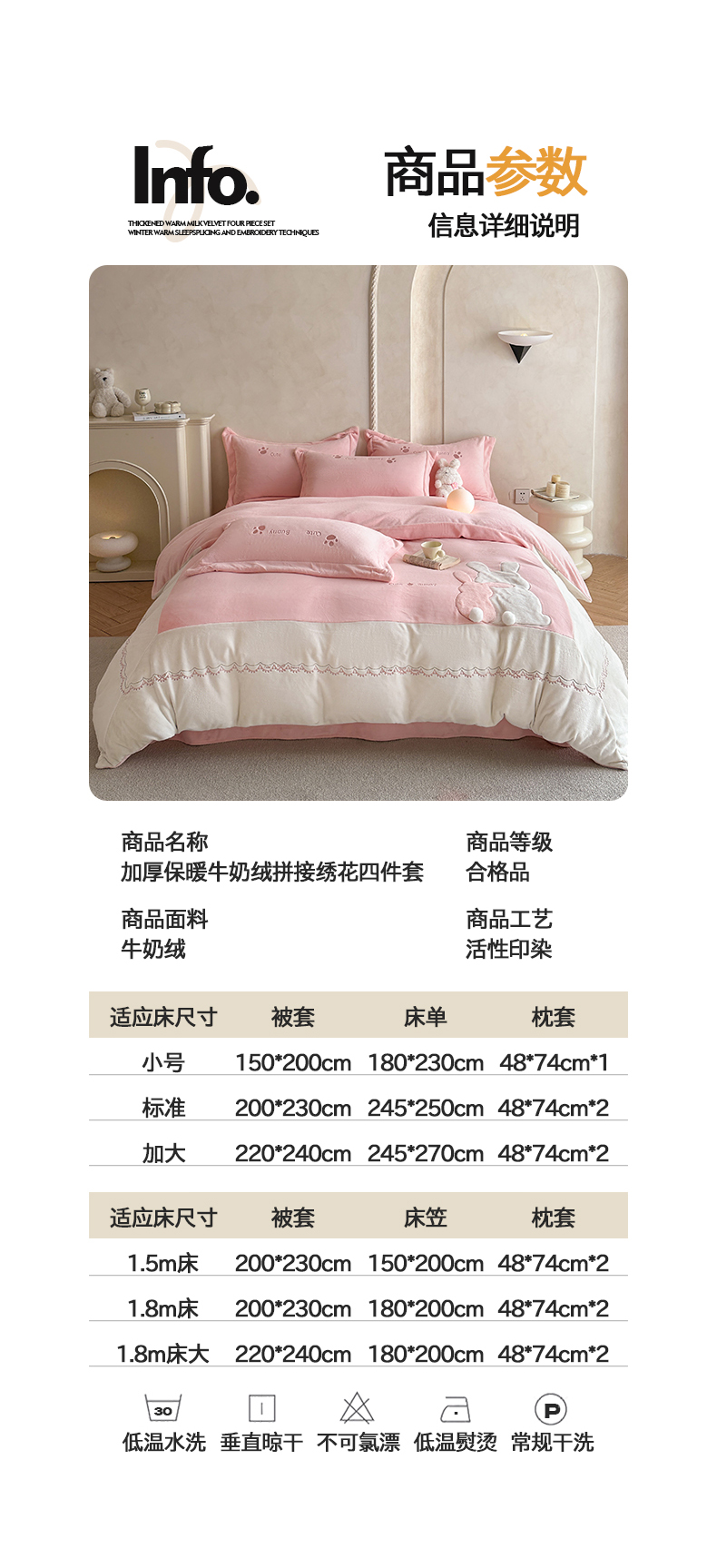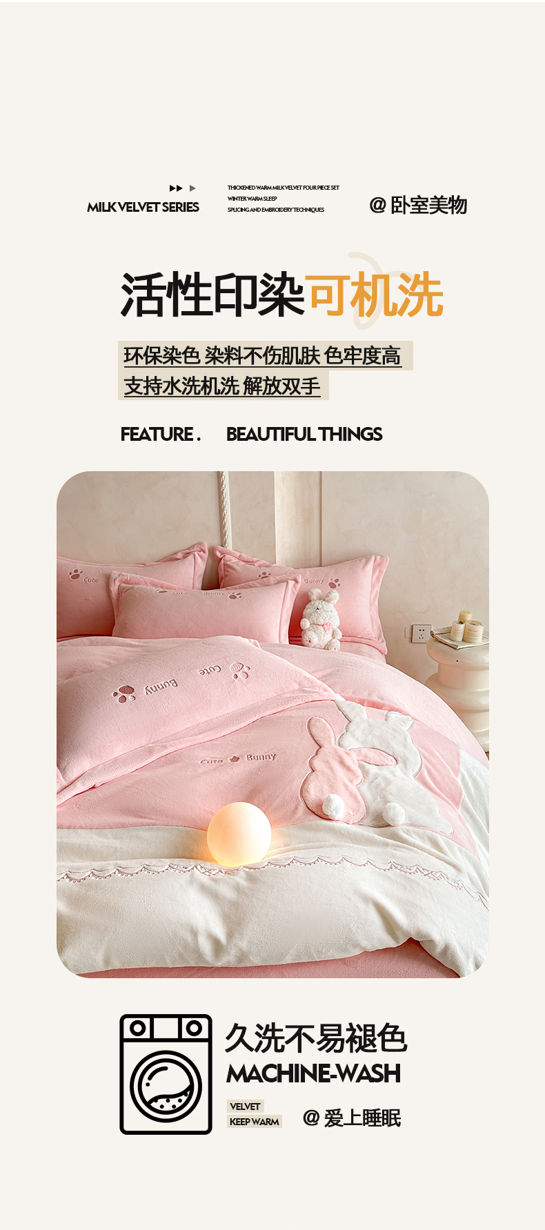 当前位置: 91家纺网 > 商品网购 > 床品套件 > 四件套 > 牛奶绒四件套 > 置顶家纺 2025新款魔法兔兔牛奶绒拼接刺绣系列四件套 魔法兔兔-粉