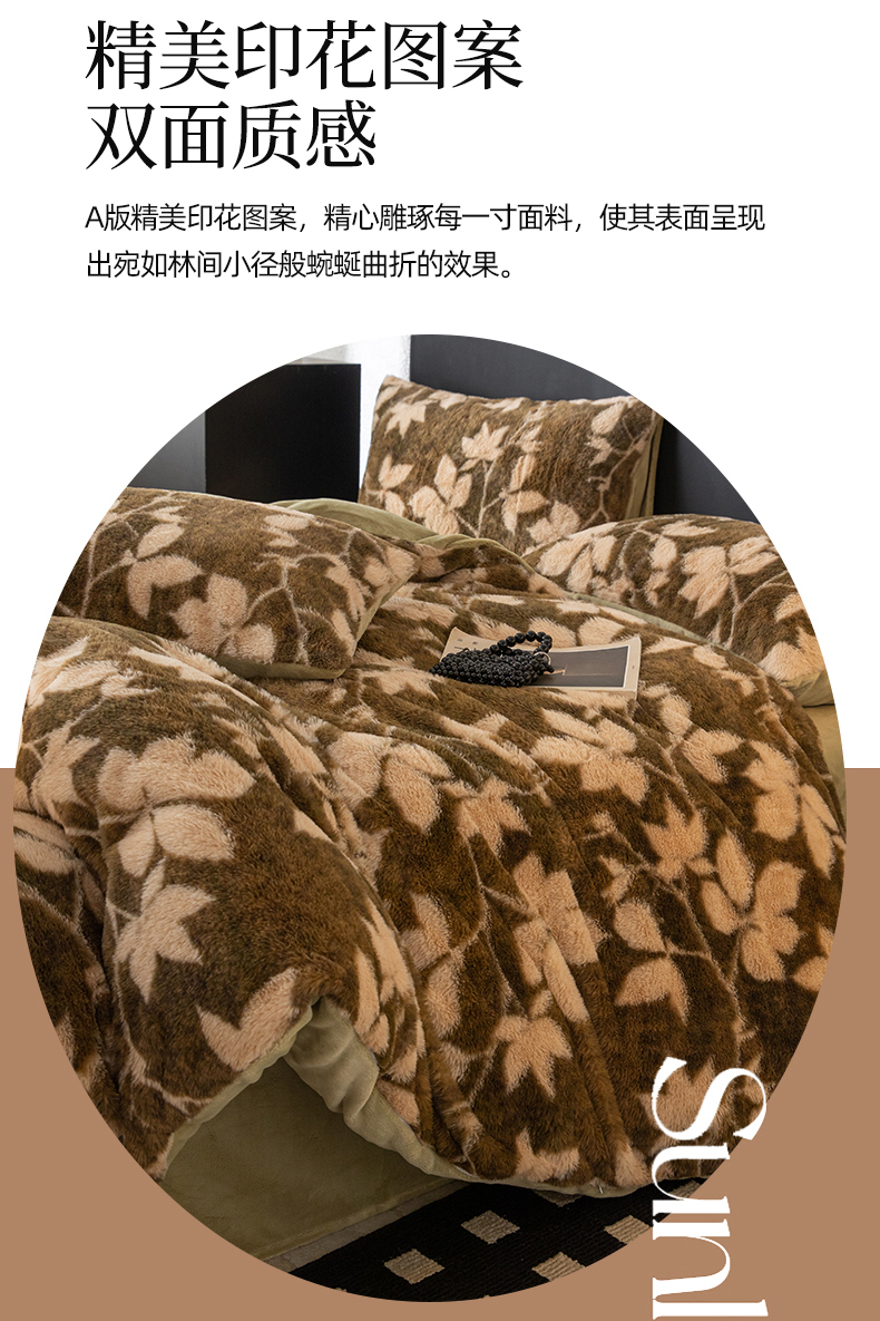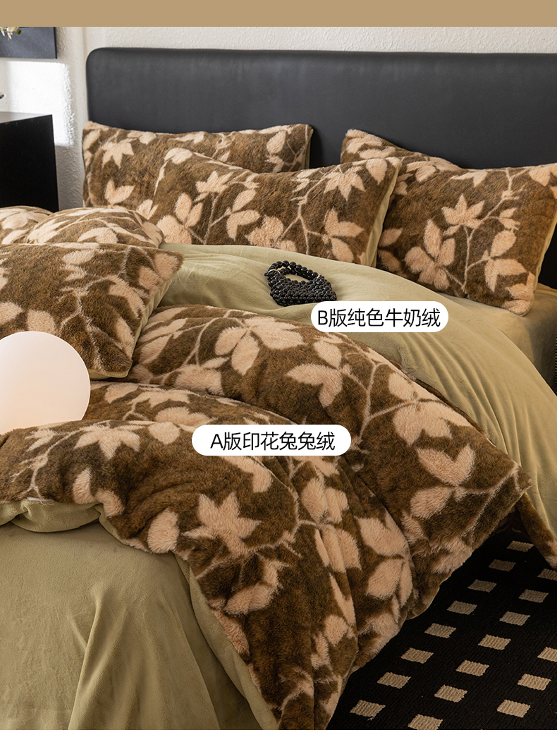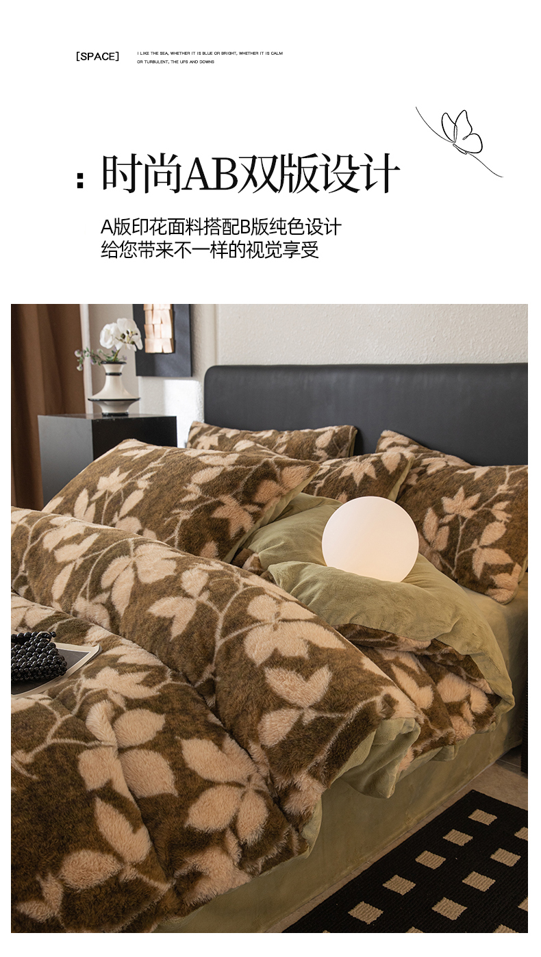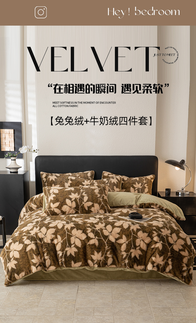 (总)简宜家居(朝初家纺) 2025新款印花兔兔绒+纯色牛奶绒双拼四件套,蝶影暖绒,米绒花絮,墨绒花-奶白,秋枝果绿,秋枝焦糖,一支秀-咖