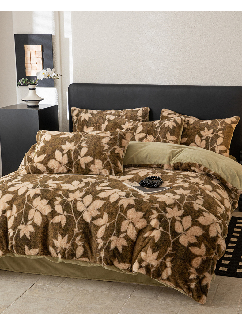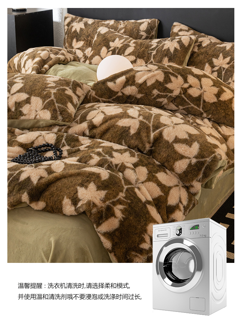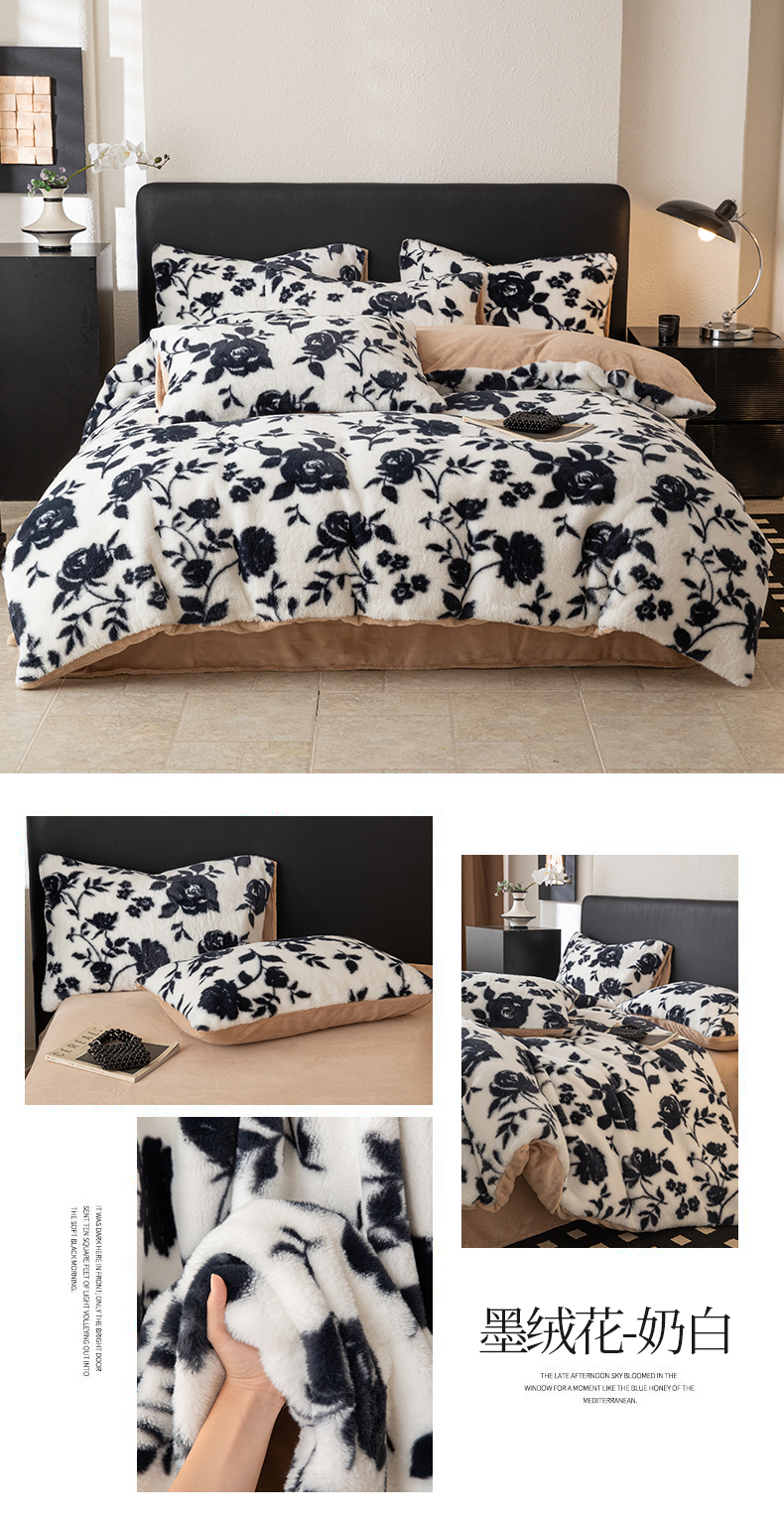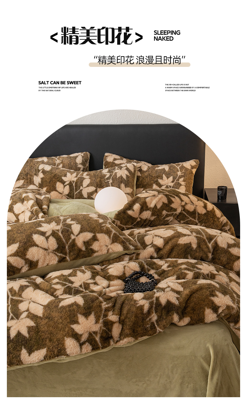 (总)简宜家居(朝初家纺) 2025新款印花兔兔绒+纯色牛奶绒双拼四件套,蝶影暖绒,米绒花絮,墨绒花-奶白,秋枝果绿,秋枝焦糖,一支秀-咖