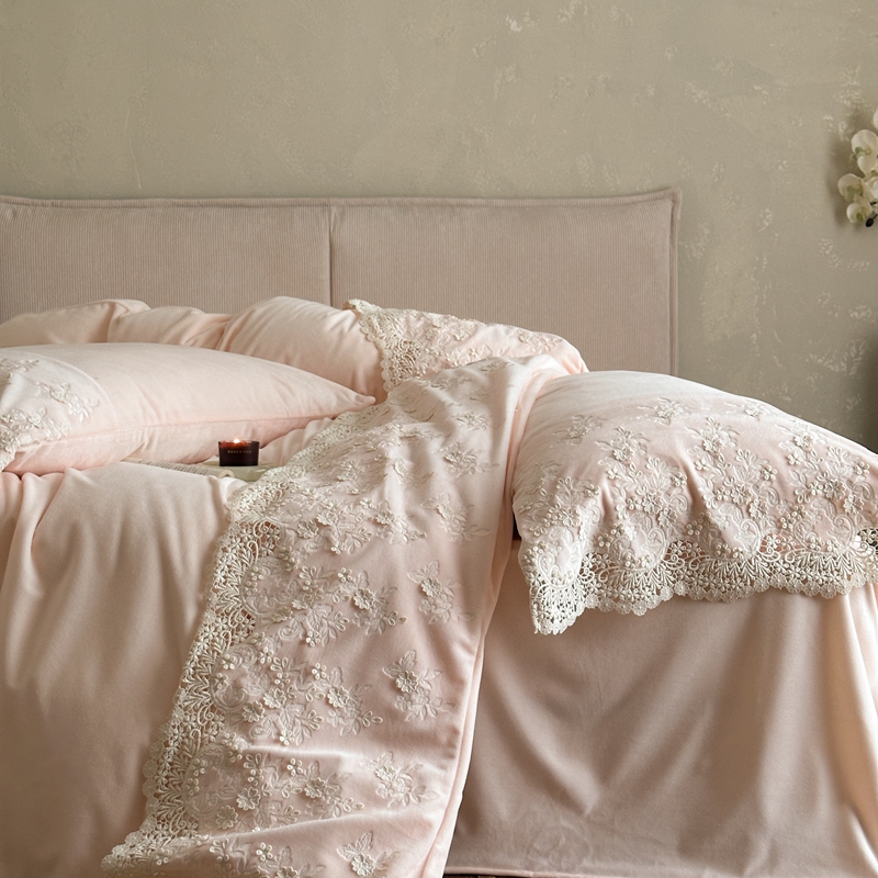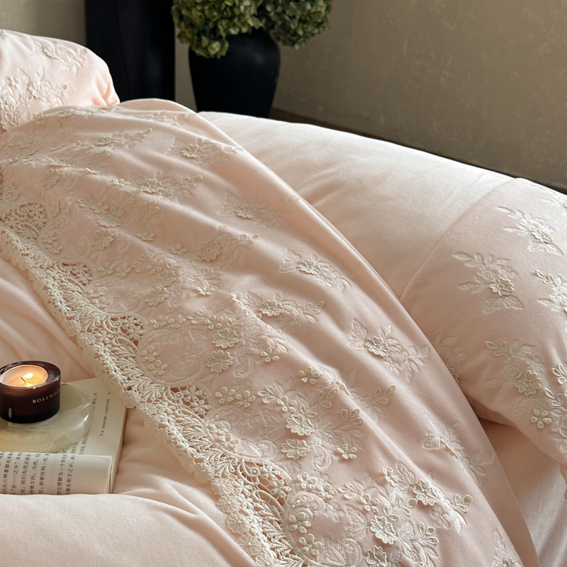 佳汐蓝家纺 2025新款230g婴肤绒立体刺绣花边四件套-秘密花园 秘密花园-粉色