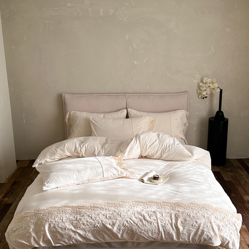 (总)佳汐蓝家纺 2026新款牛奶绒雕花韩式雪纺花边四件套-莫妮卡(券后不低于298元),莫妮卡