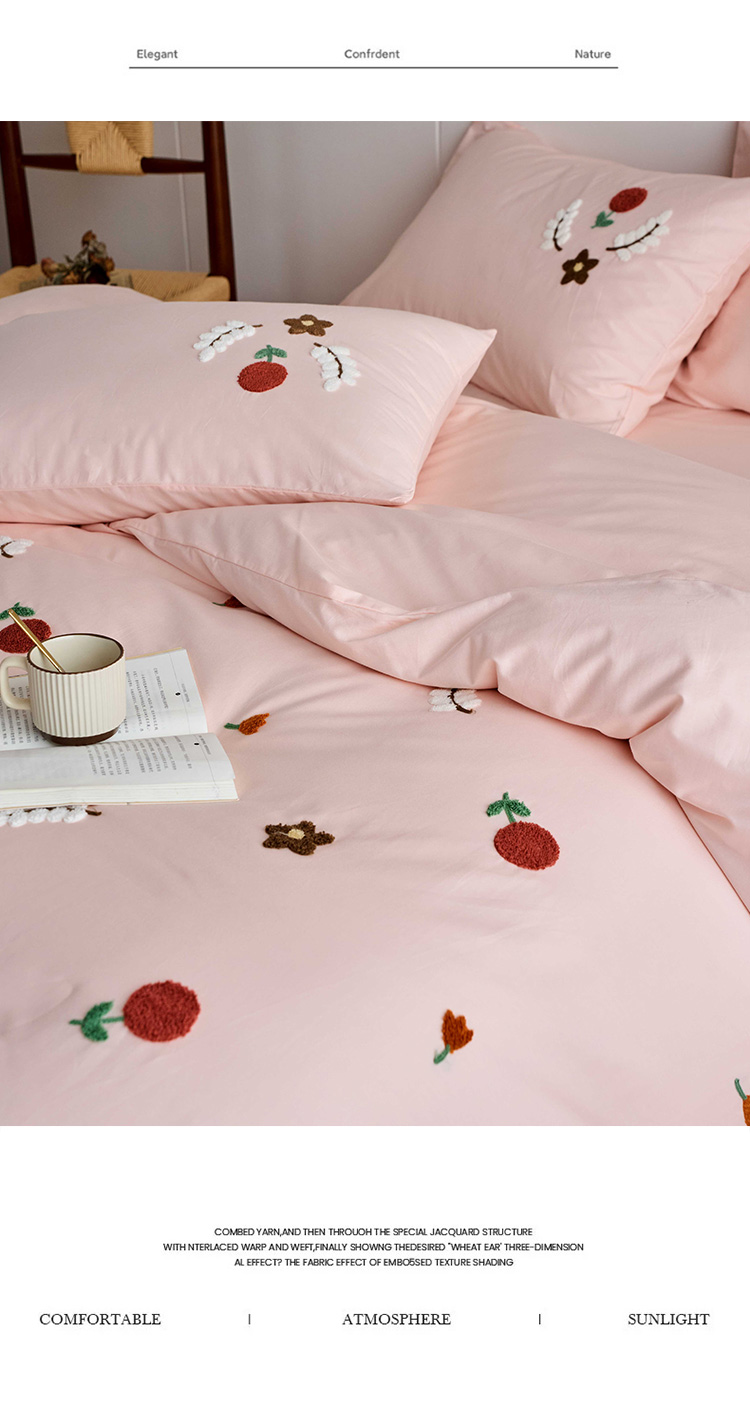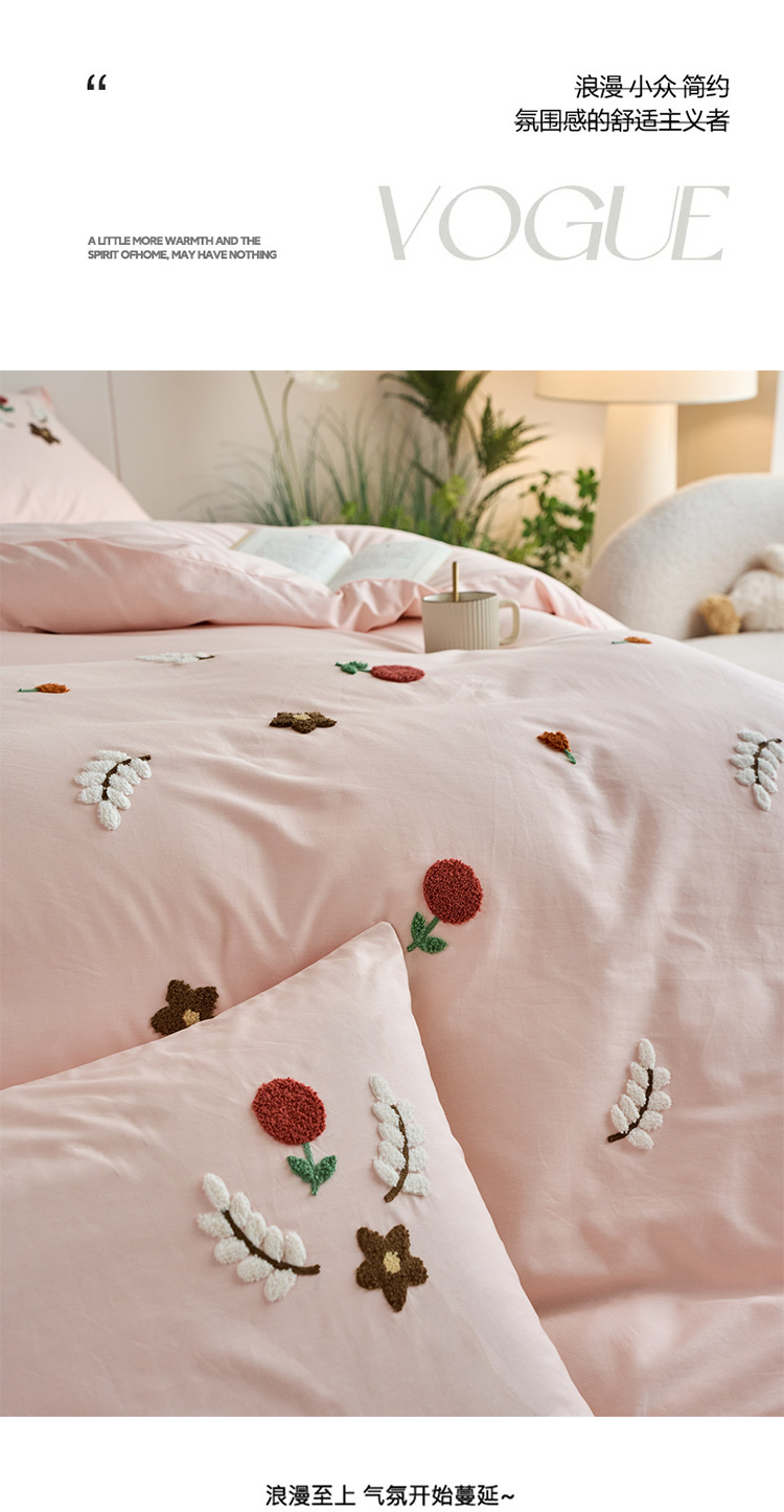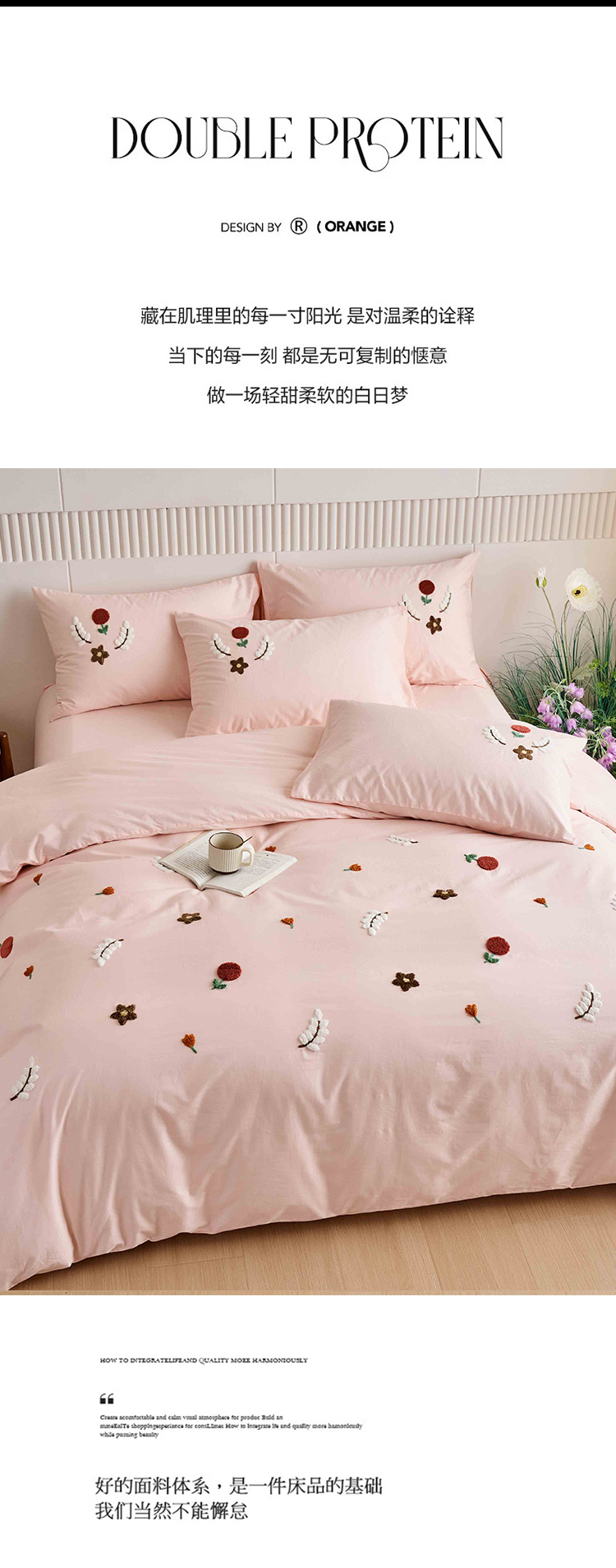 商品名称:悦然毛巾被 2025新款全棉纯棉斜纹毛巾绣四件套 幸福时光米白