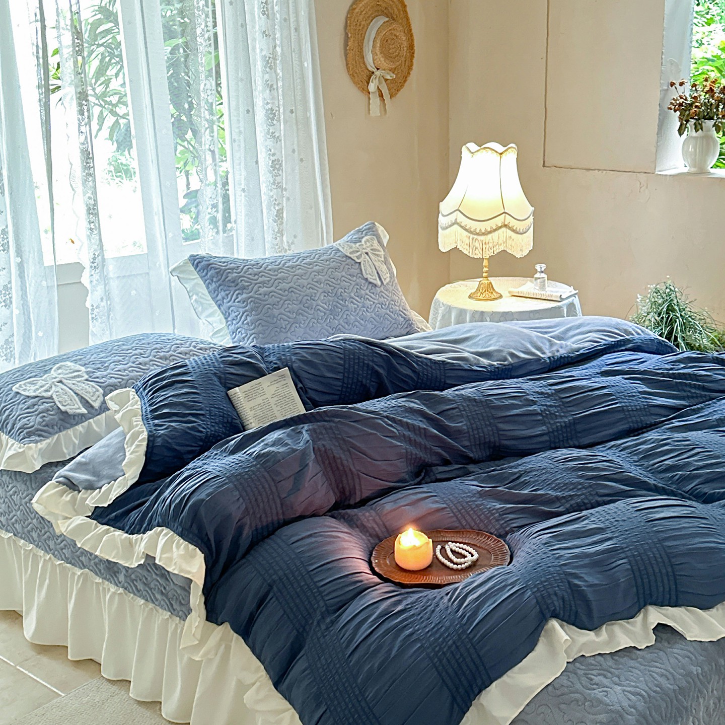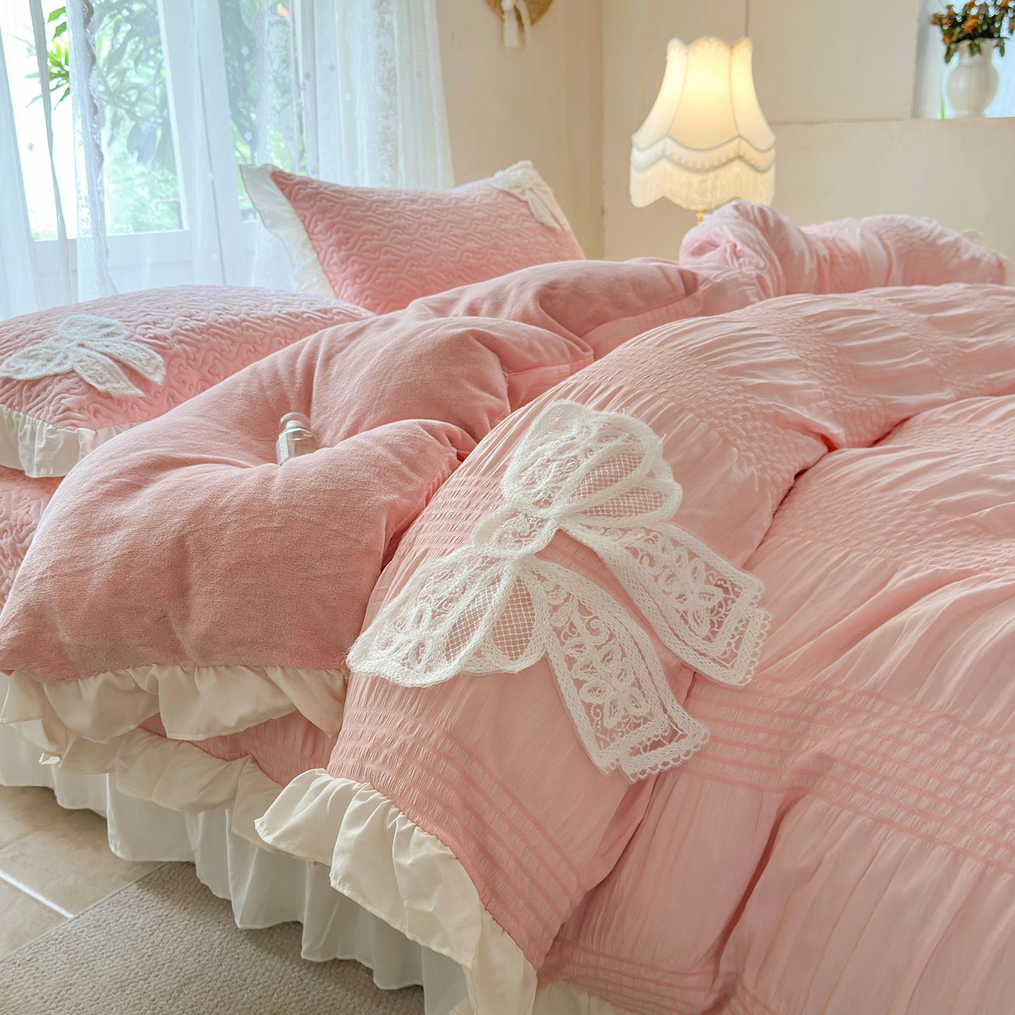 (总)梵克保罗 2026春夏新品全棉纯棉13372法式双层花边系列四件套,艾米丽,安妮公主·兰,恋爱未满,萌熊乐园,柔情花梦·粉,兔兔花园,屋顶花园,伊人飘香