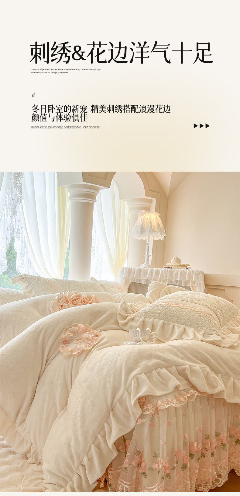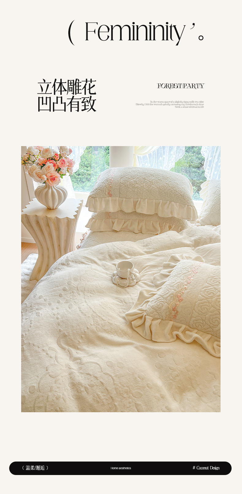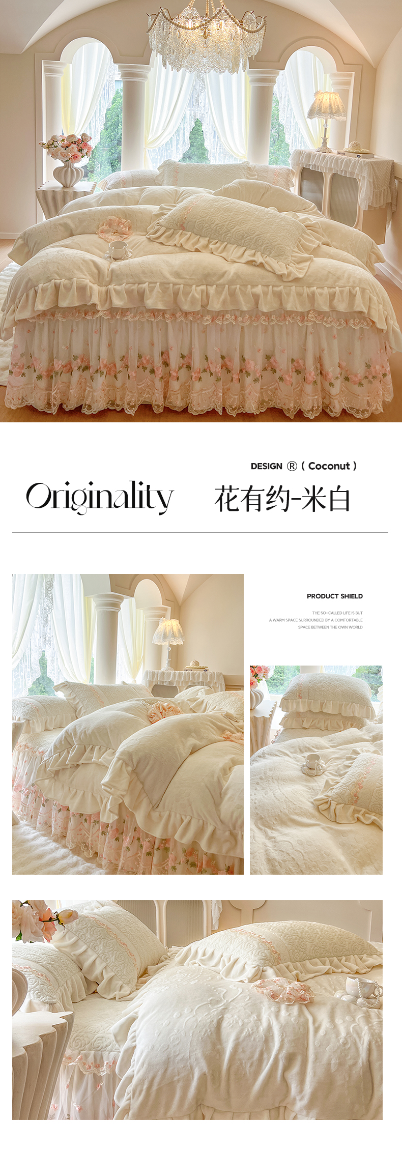 当前位置: 91家纺网 > 商品网购 > 床品套件 > 四件套 > 牛奶绒四件套 > 瑞宝 2025新款雕花牛奶绒夹棉床裙四件套-花有约 花有约-奶油白