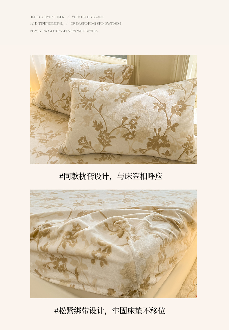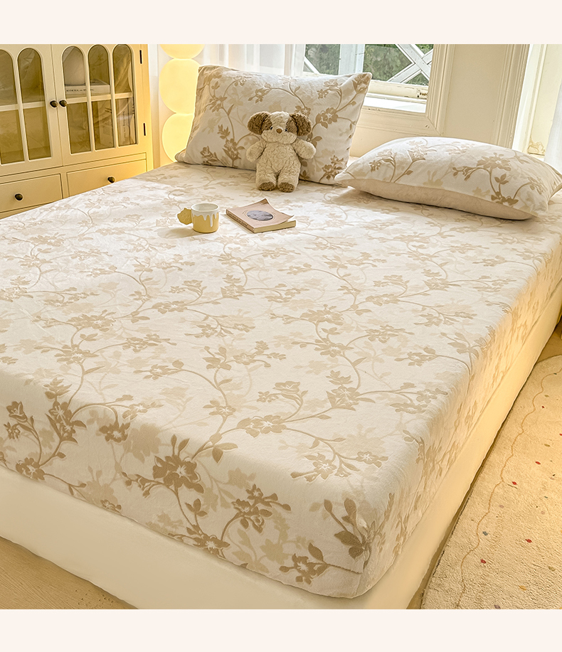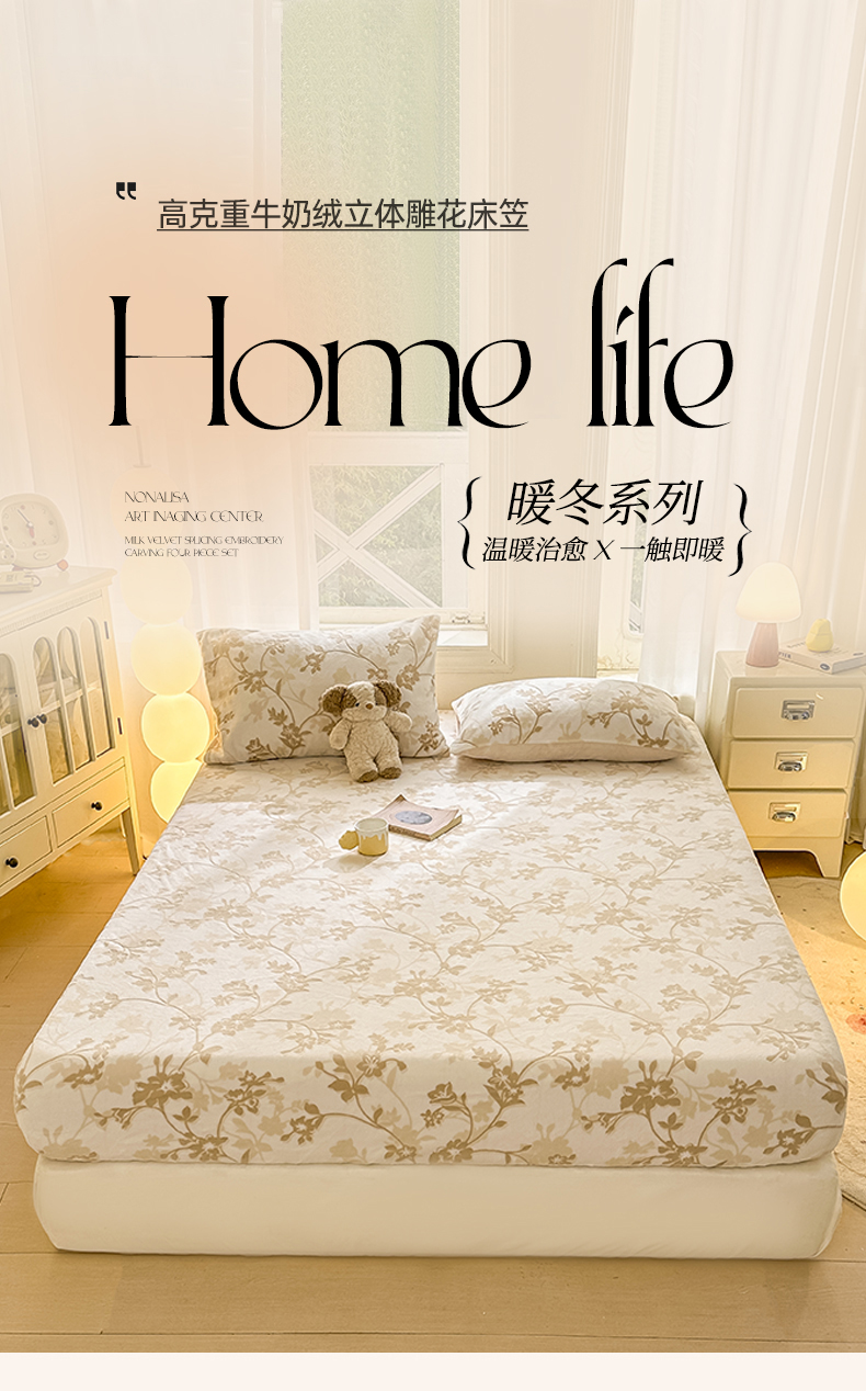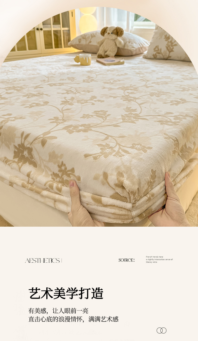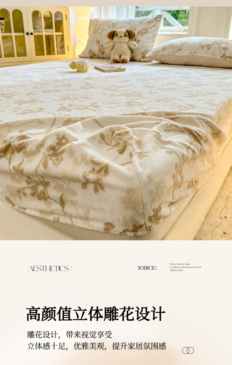• 91家纺网 家纺一手货源 找家纺 灰鲸 2025新款立体雕花牛奶绒床笠 繁花-杏