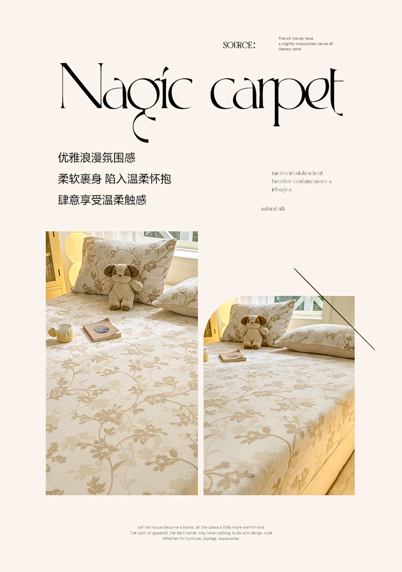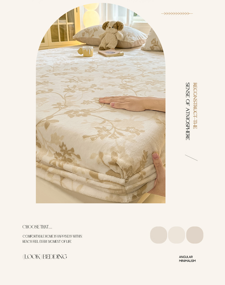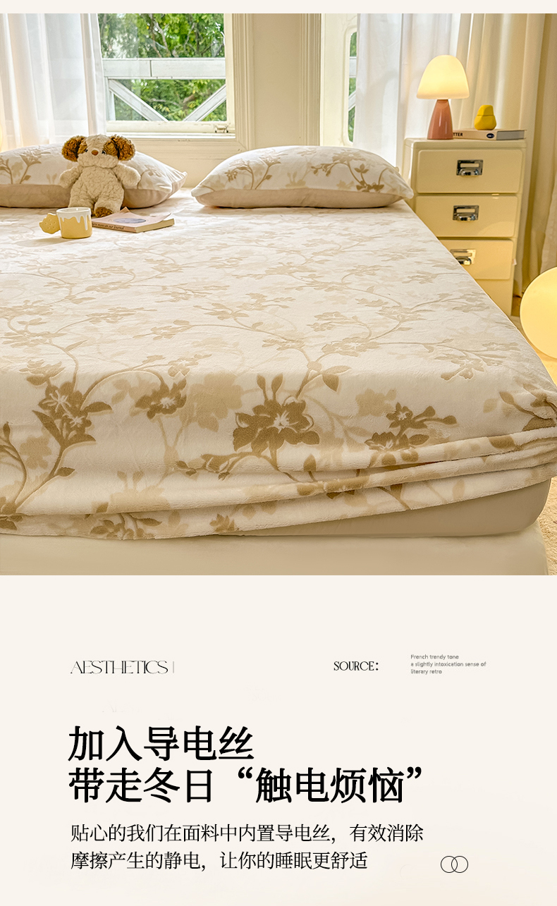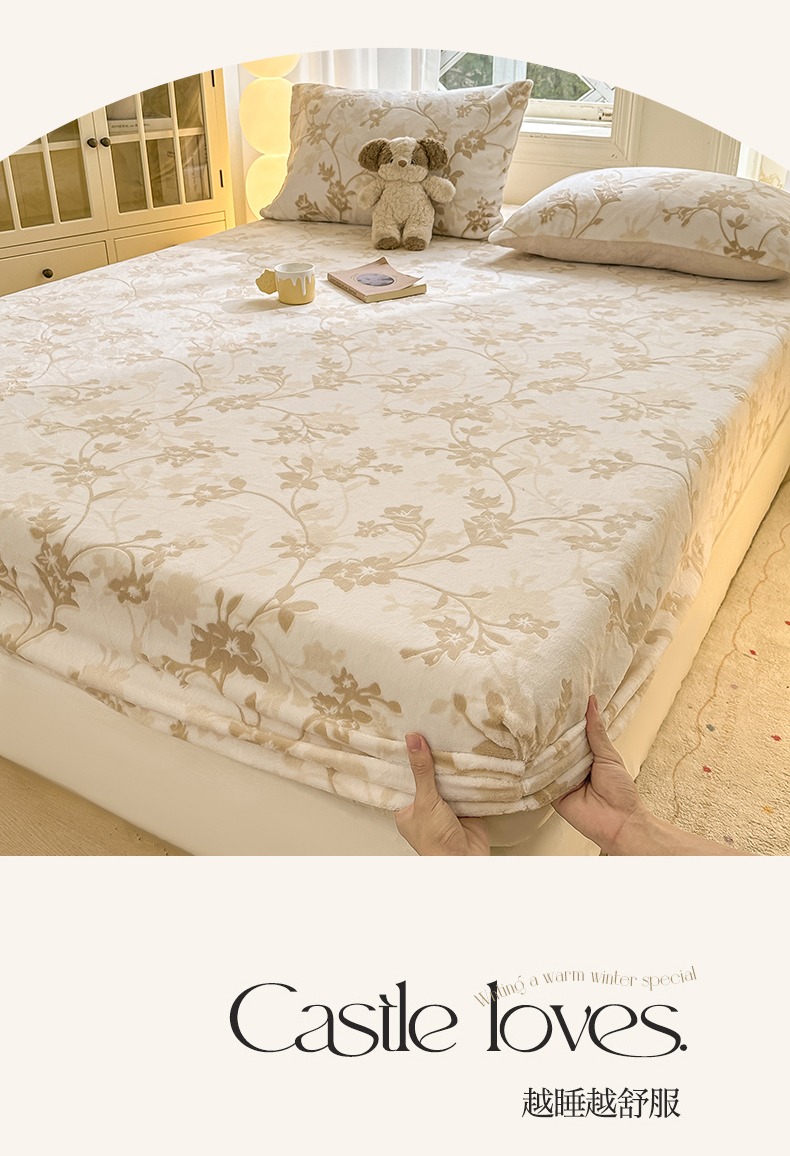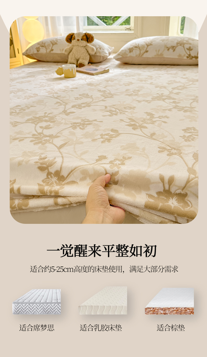 • 91家纺网 家纺一手货源 找家纺 灰鲸 2025新款立体雕花牛奶绒床笠 繁花-杏
