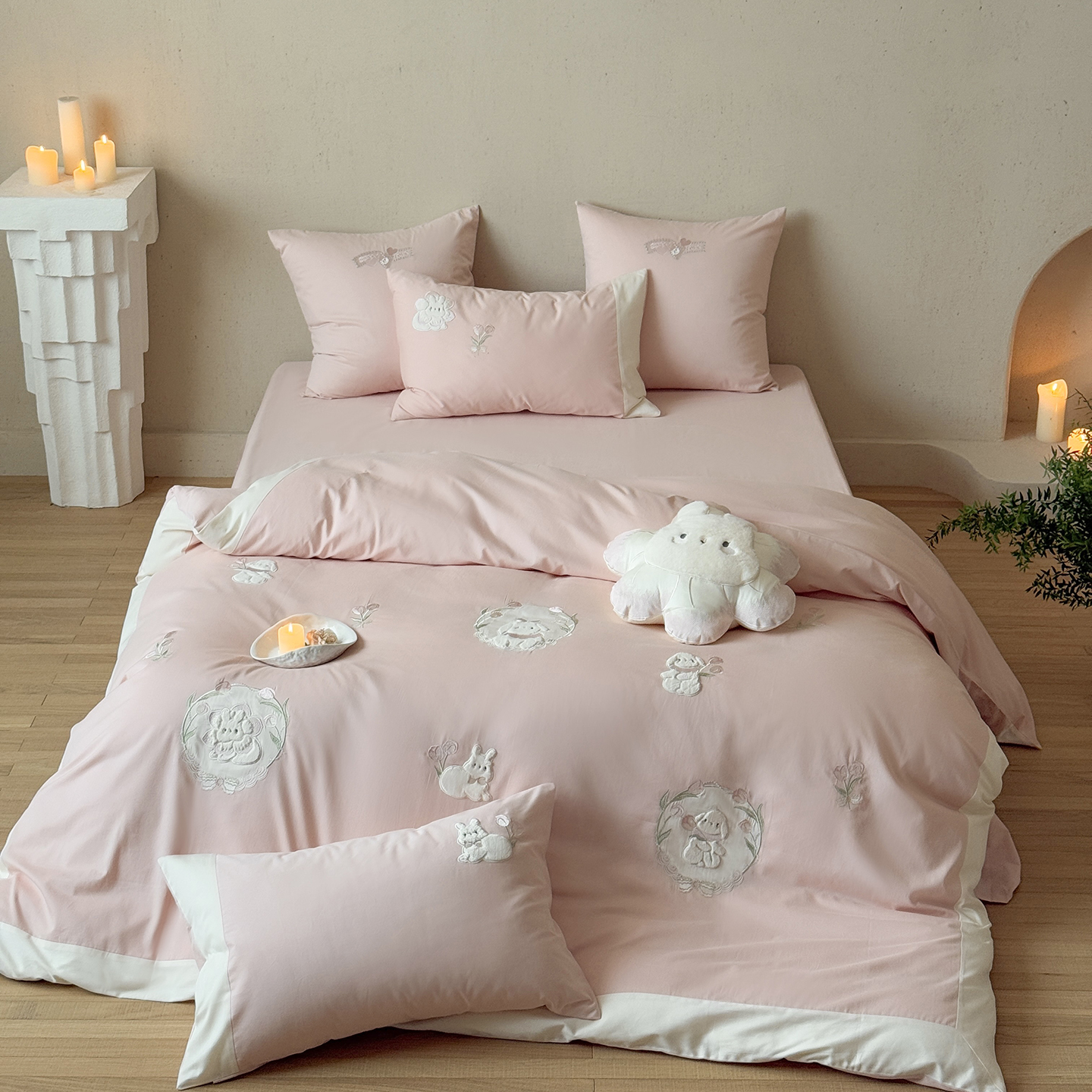 佳汐蓝家纺 2025秋冬新款磨毛四件套系列 郁见兔-粉