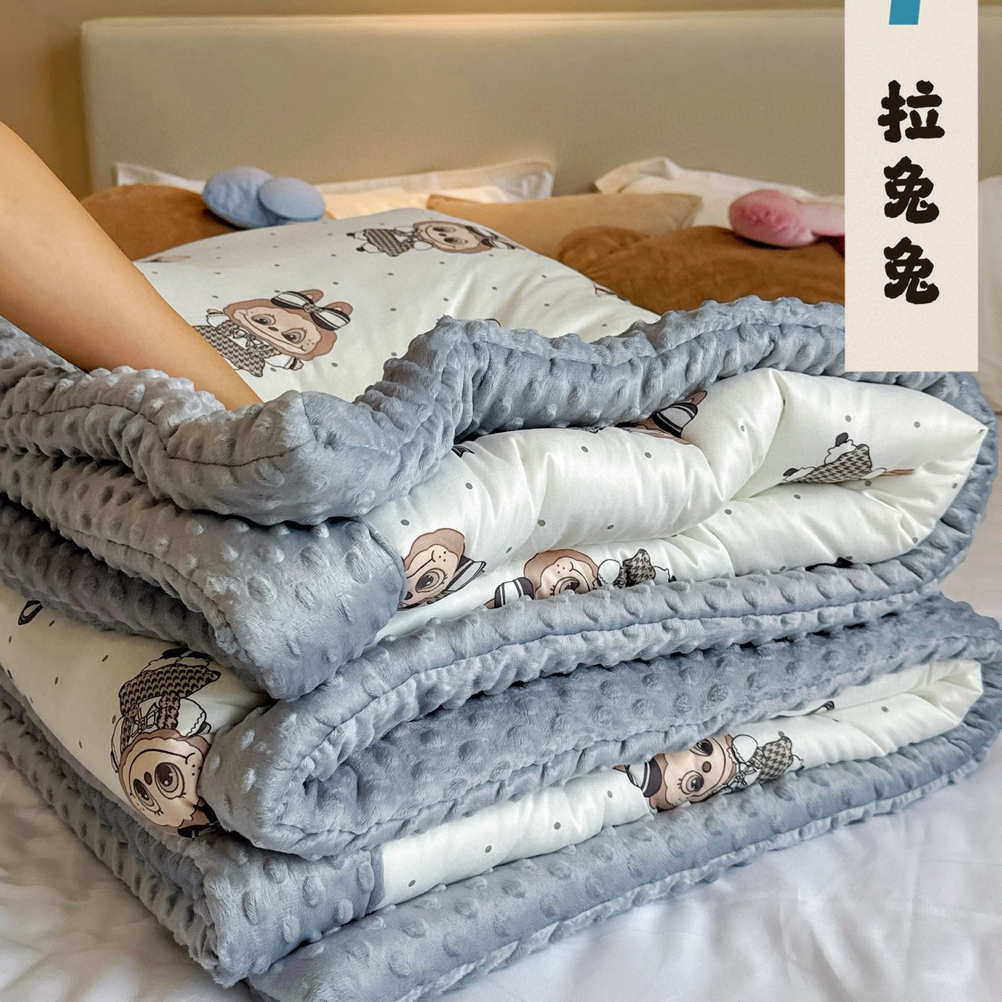 (总)兜米家居 2025新品秋冬母婴针织豆豆绒被纯手工包边卡通立体豆豆绒保暖被子被芯,滑板恐龙,巴拉小熊,花海,花花兔,花小象,幻境,可爱兔子,拉兔兔,兰花小狮子,萌宠小狗,喵喵,小碎花