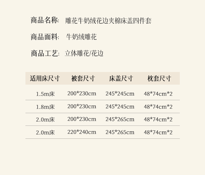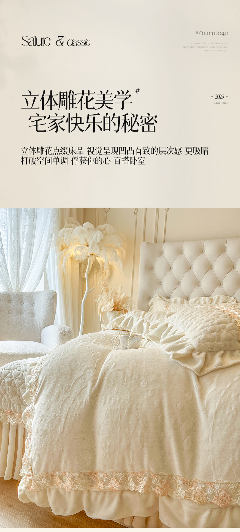 (总)瑞宝 2025新款雕花牛奶绒花边夹棉床盖四件套-云梦,云梦-米白,云梦-靛蓝,云梦-浅咖,云梦-清新绿,云梦-柔粉,云梦-雾紫