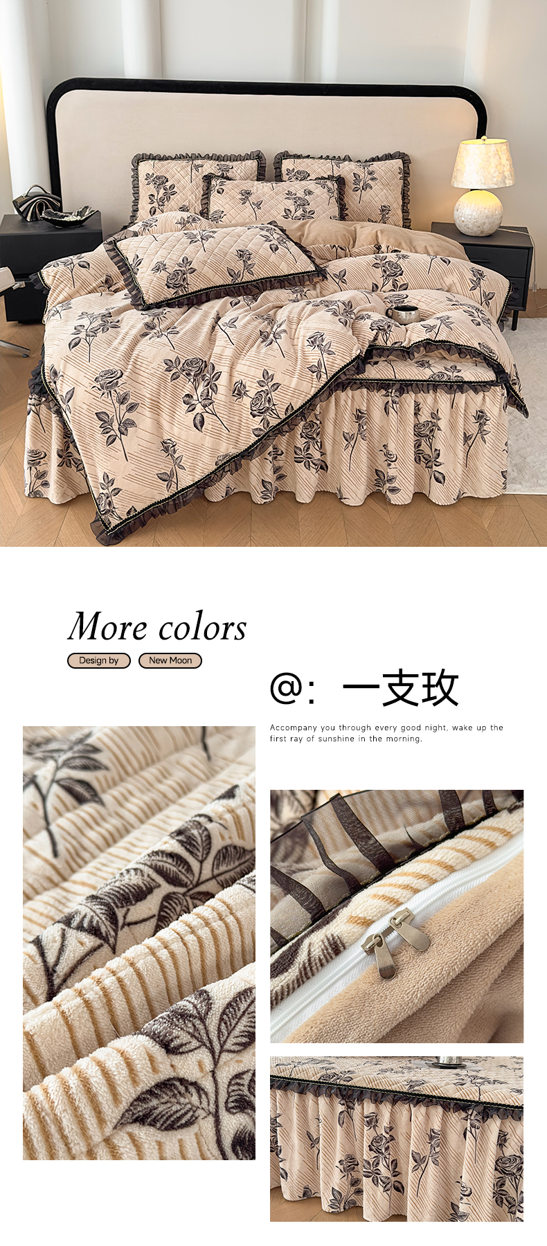 当前位置: 91家纺网 > 商品网购 > 床品套件 > 四件套 > 牛奶绒四件套 > 家之硕家纺 2025新款雕花牛奶绒床裙款四件套 梦蝶