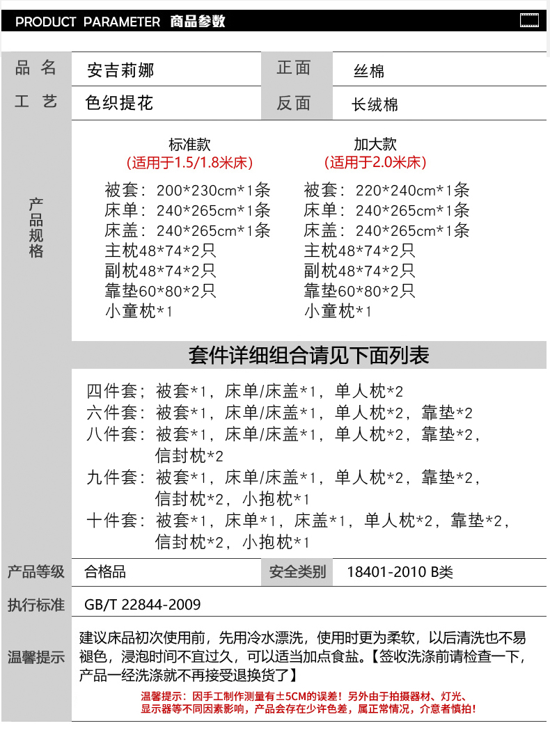1.8m床盖款九件套 | 请咨询商家 |