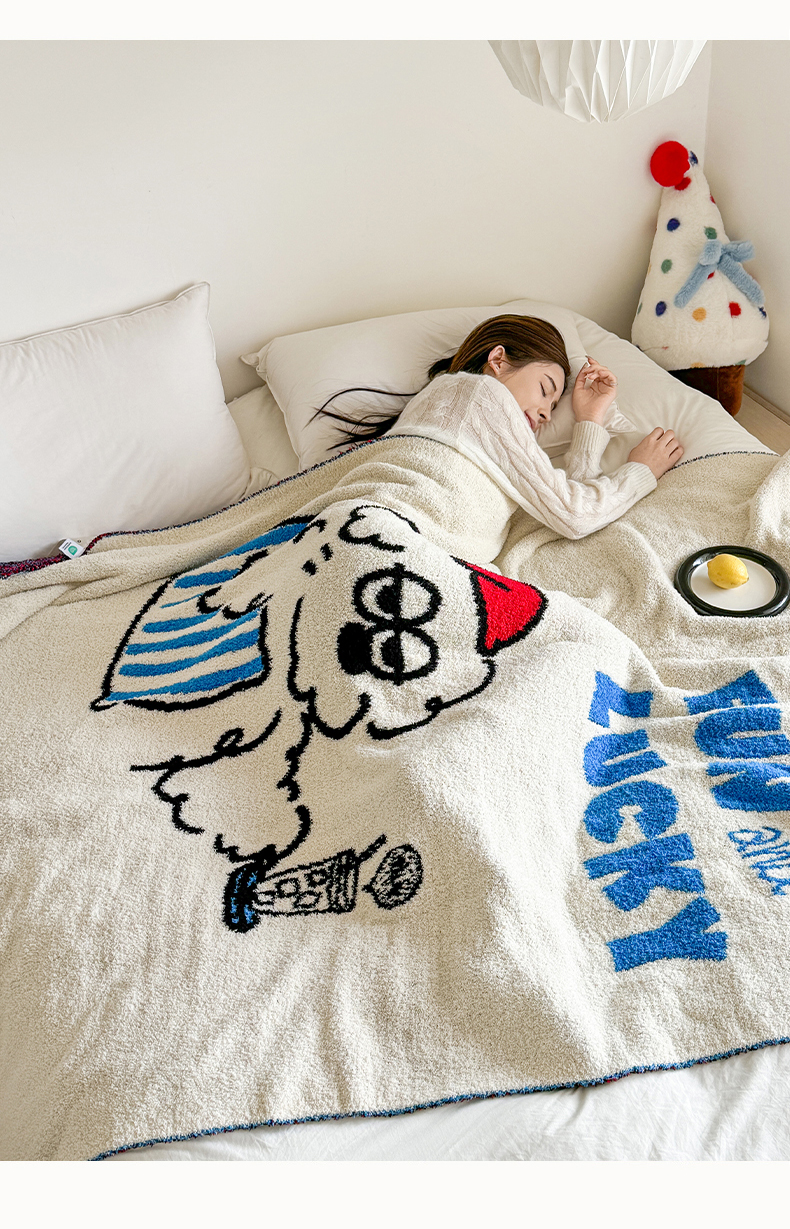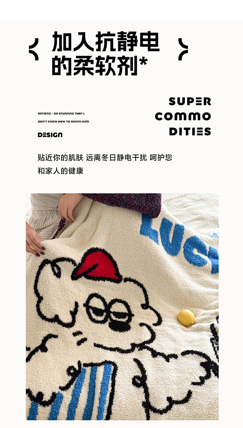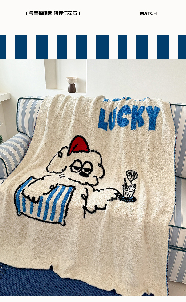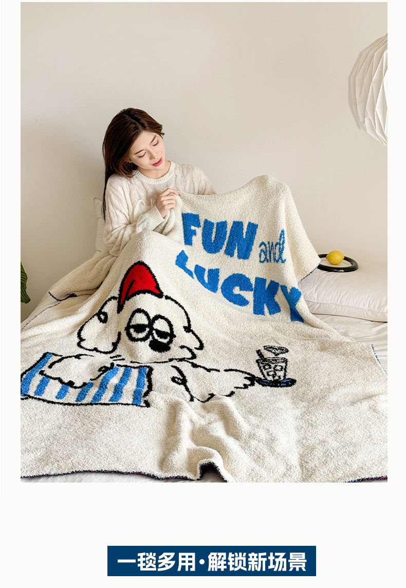 商品名称:丹本家纺 2025新款设计师原创多功能针织半边绒毛毯午休毯盖毯加厚毯子 幸运送餐狗