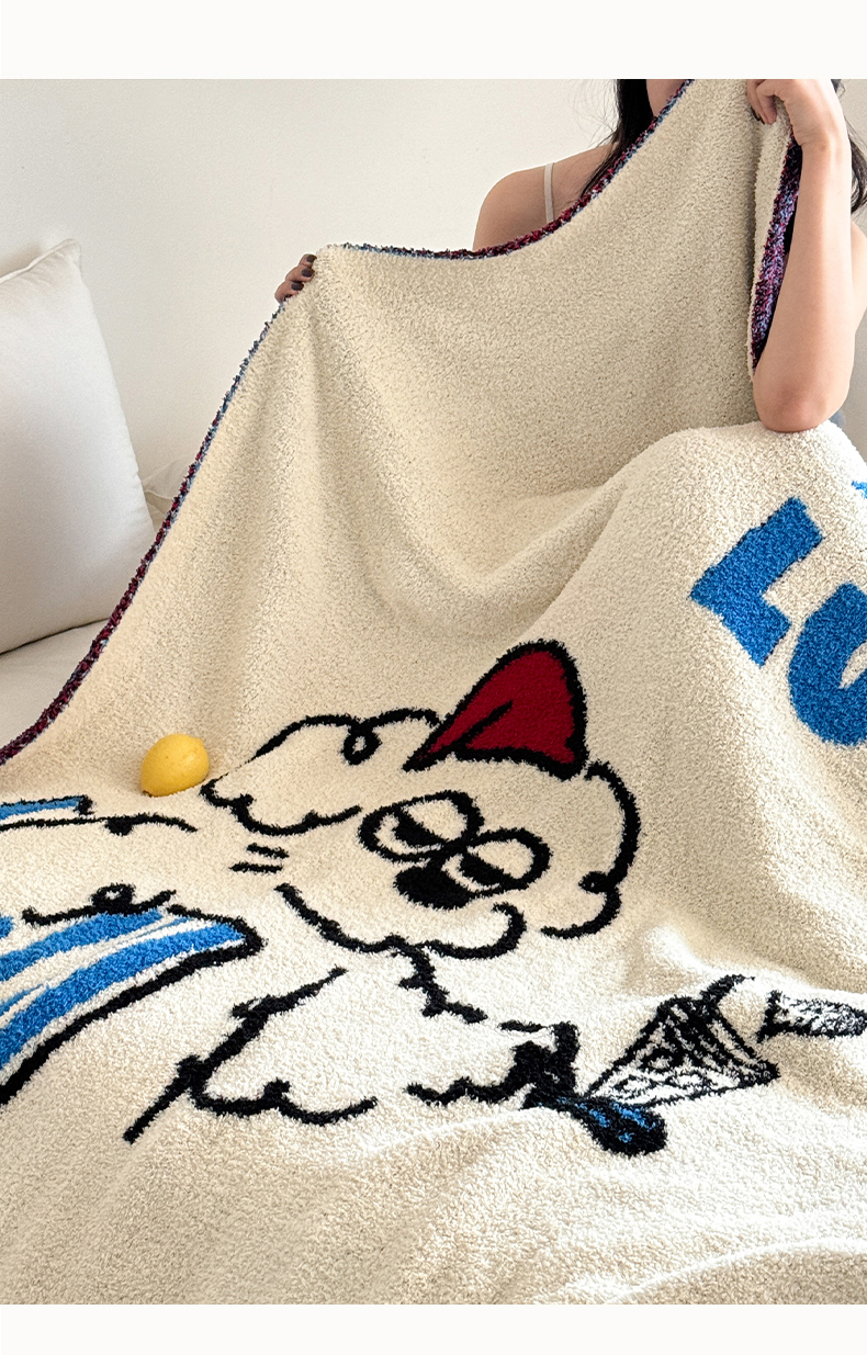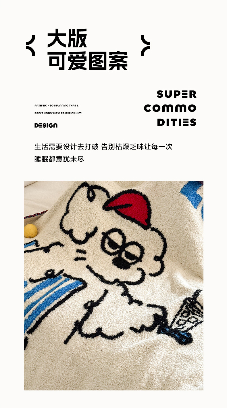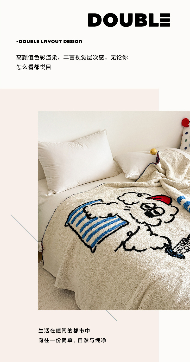 商品名称:丹本家纺 2025新款设计师原创多功能针织半边绒毛毯午休毯盖毯加厚毯子 幸运送餐狗